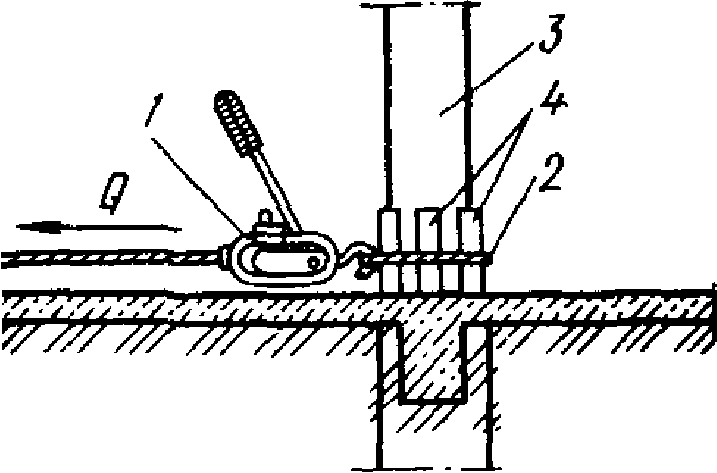 T - усилие в тросе, идущем на лебедку, кН; Q - масса