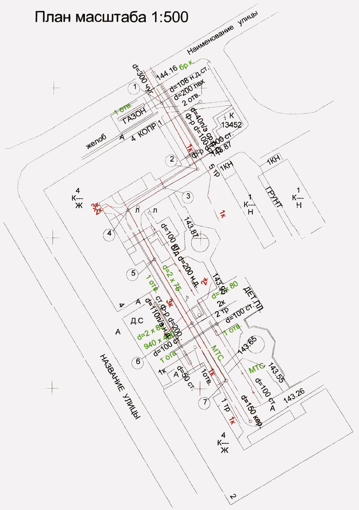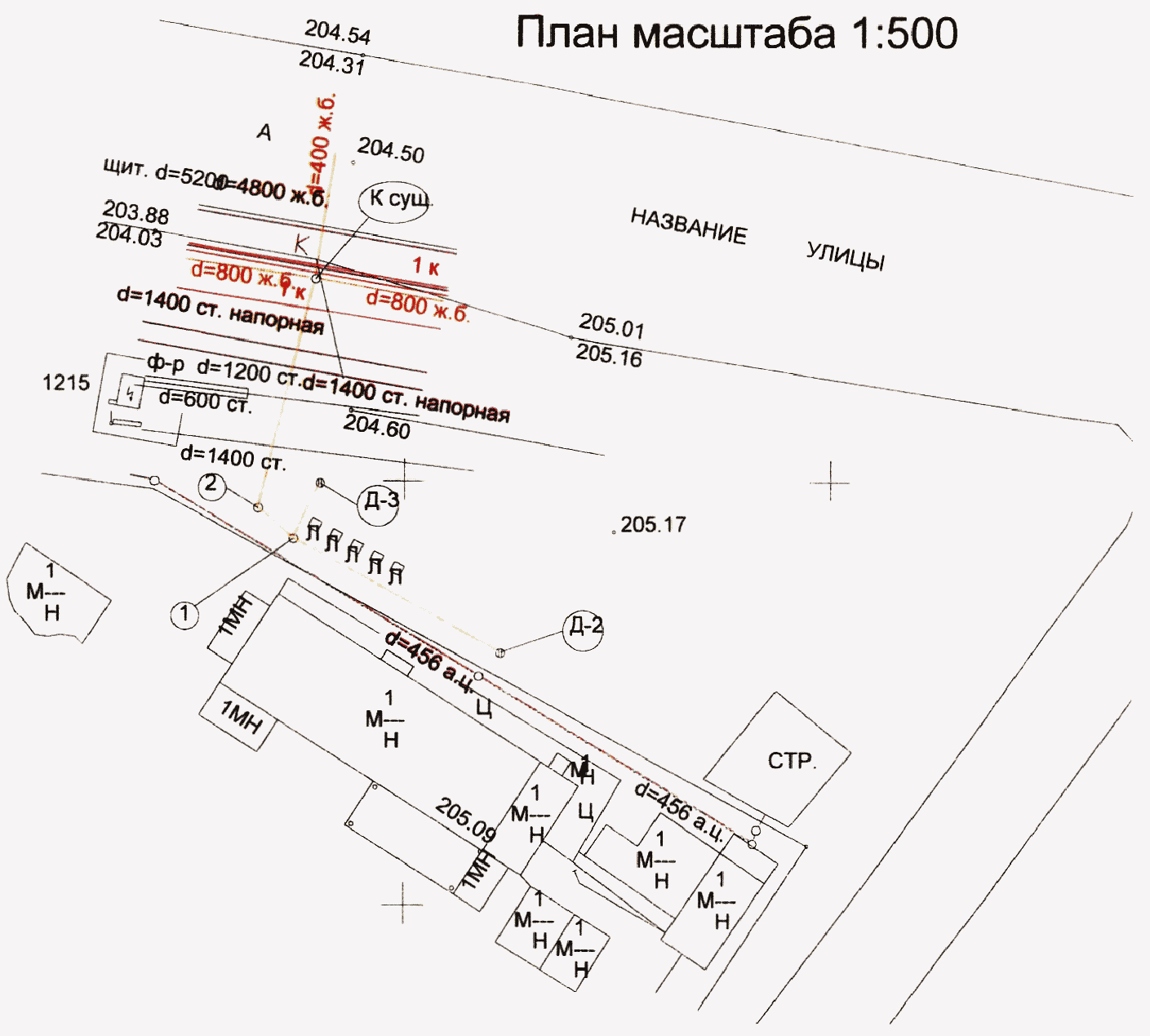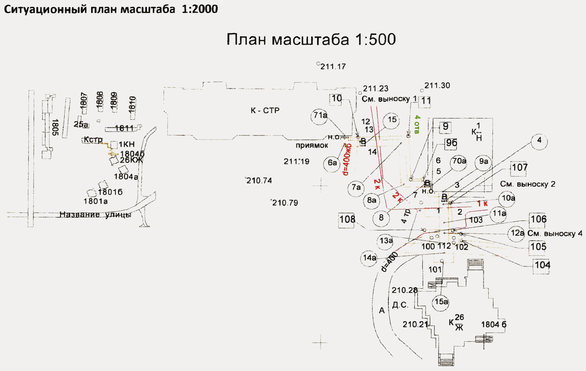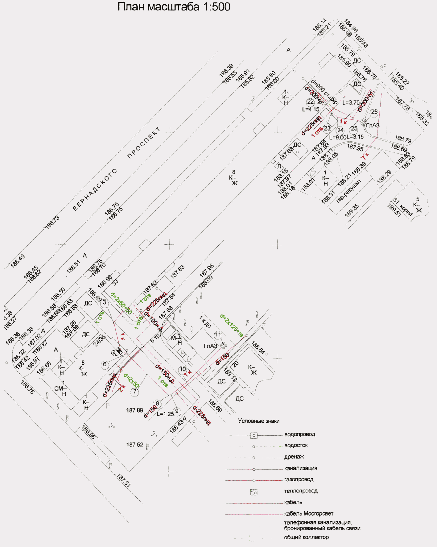 проектного и существующего размещений зданий (сооружений) и инженерных сетей на строительной площадке;