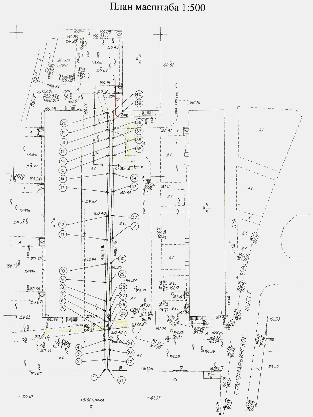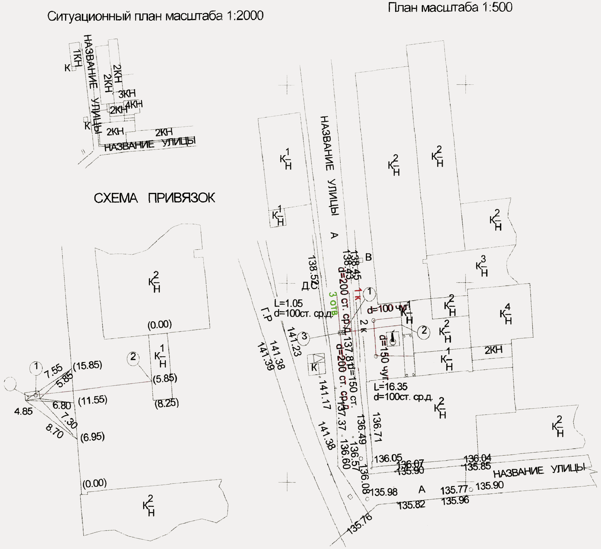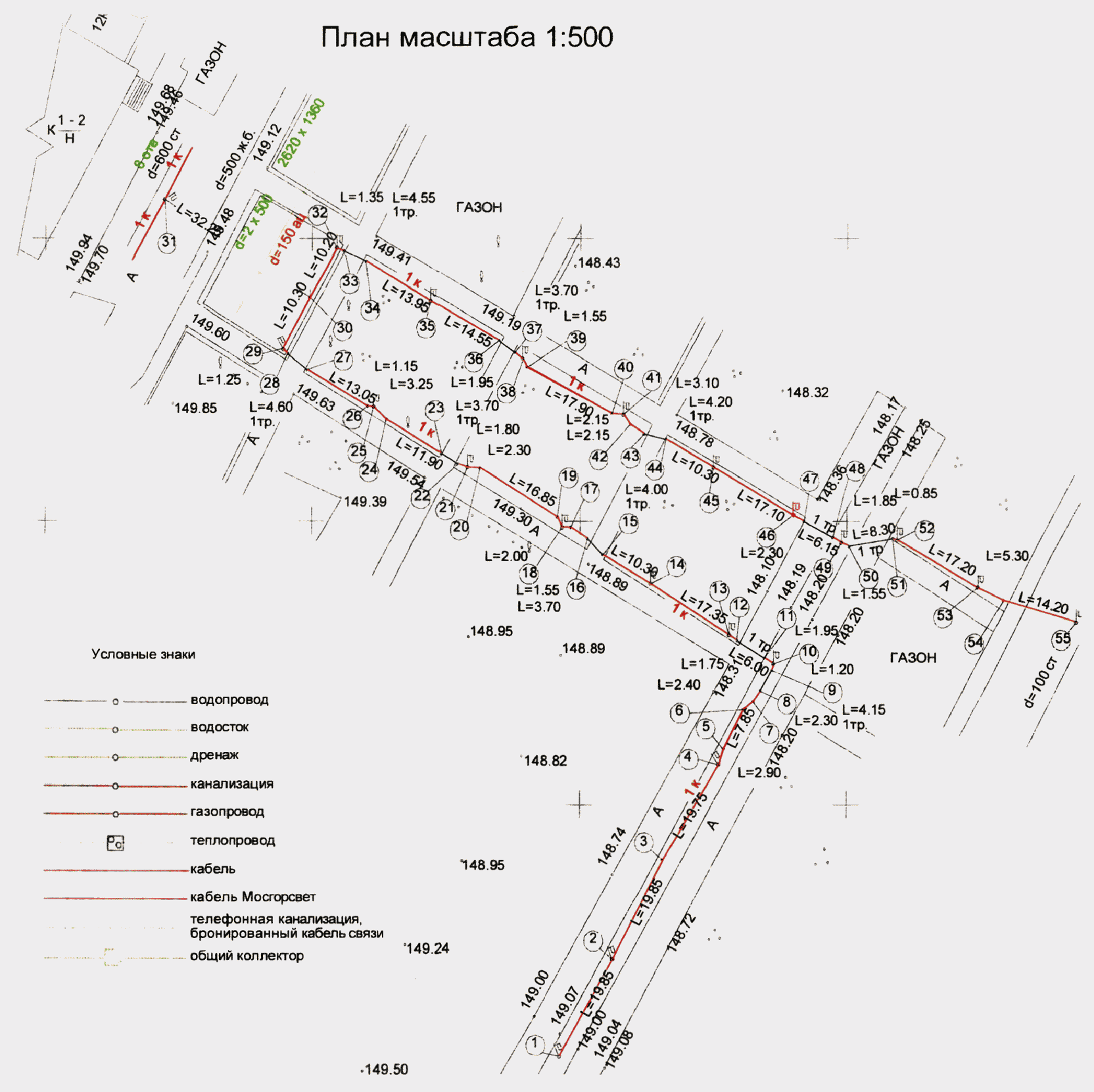 проектного и существующего размещений зданий (сооружений) и инженерных сетей на строительной площадке;