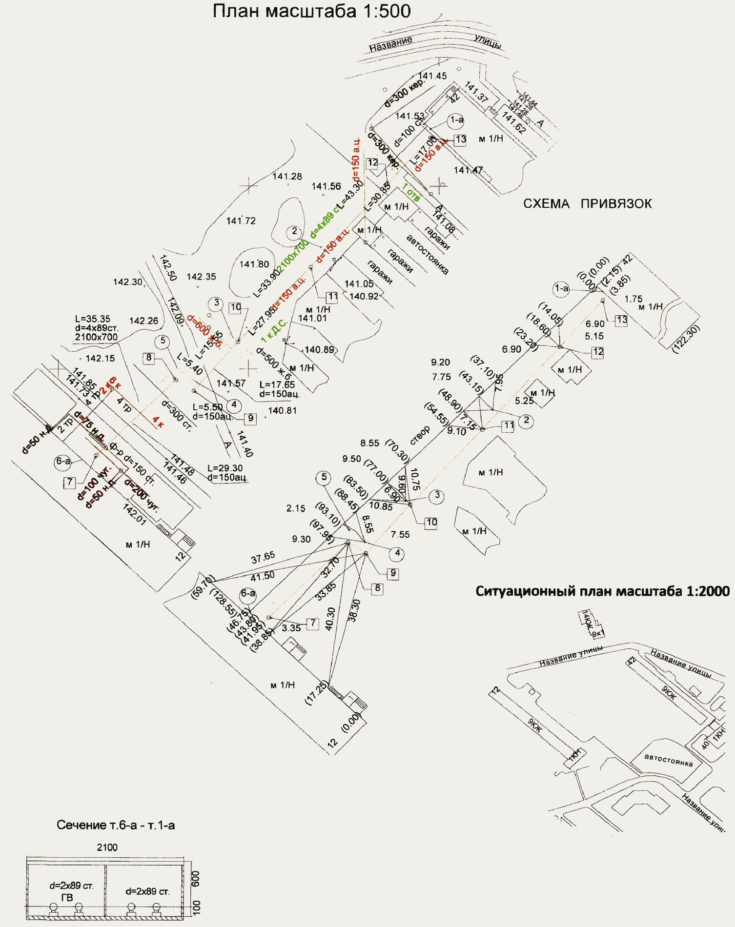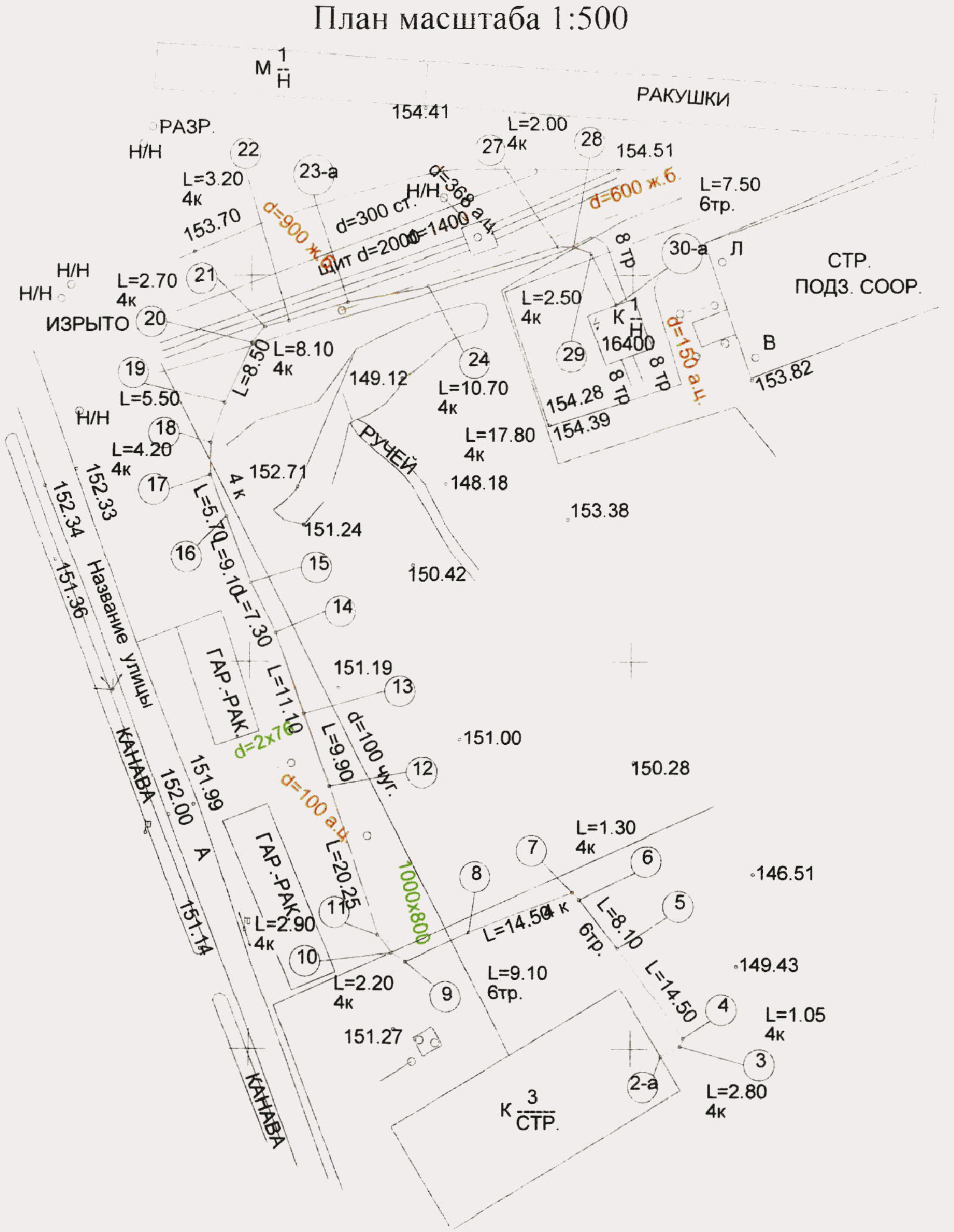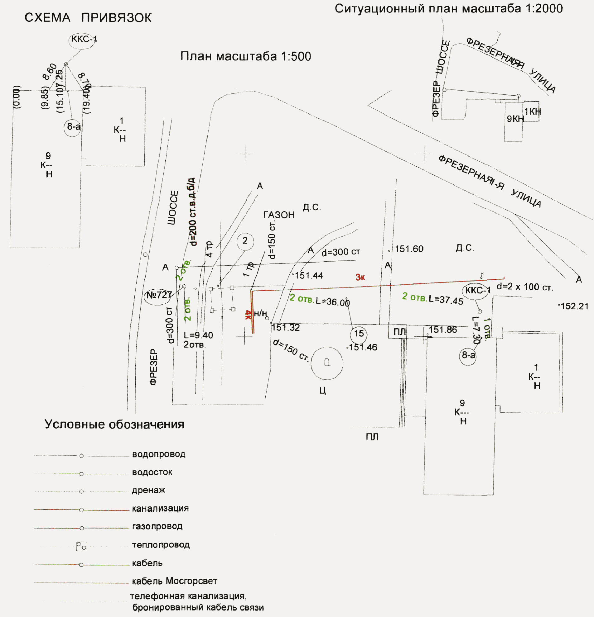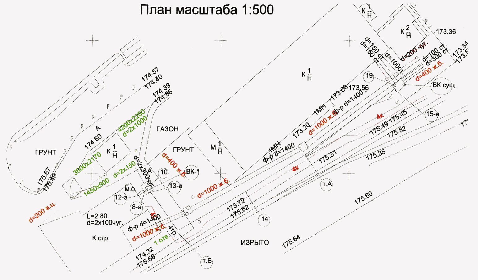 проектного и существующего размещений зданий (сооружений) и инженерных сетей на строительной площадке;