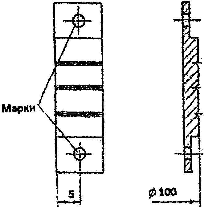 в) Марка для измерения кренов и отклонений от вертикали (при наклонном)