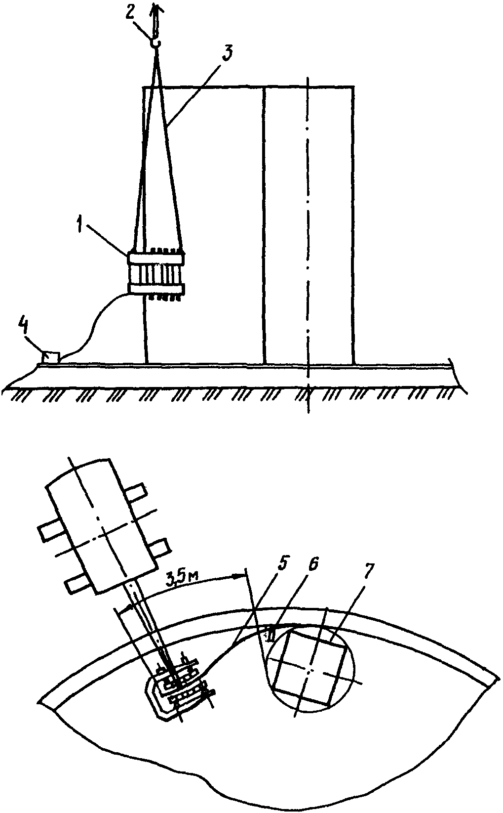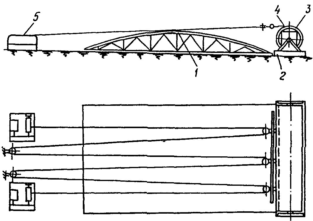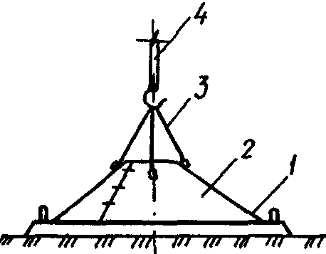 1 - самоходный кран; 2 - разгрузочная траверса;