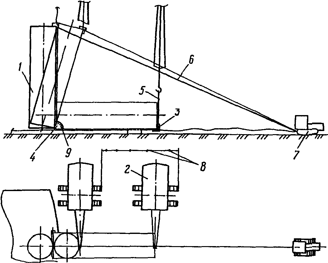 5 - рулон; 6 - тяговый канат на лебедку или трактор;