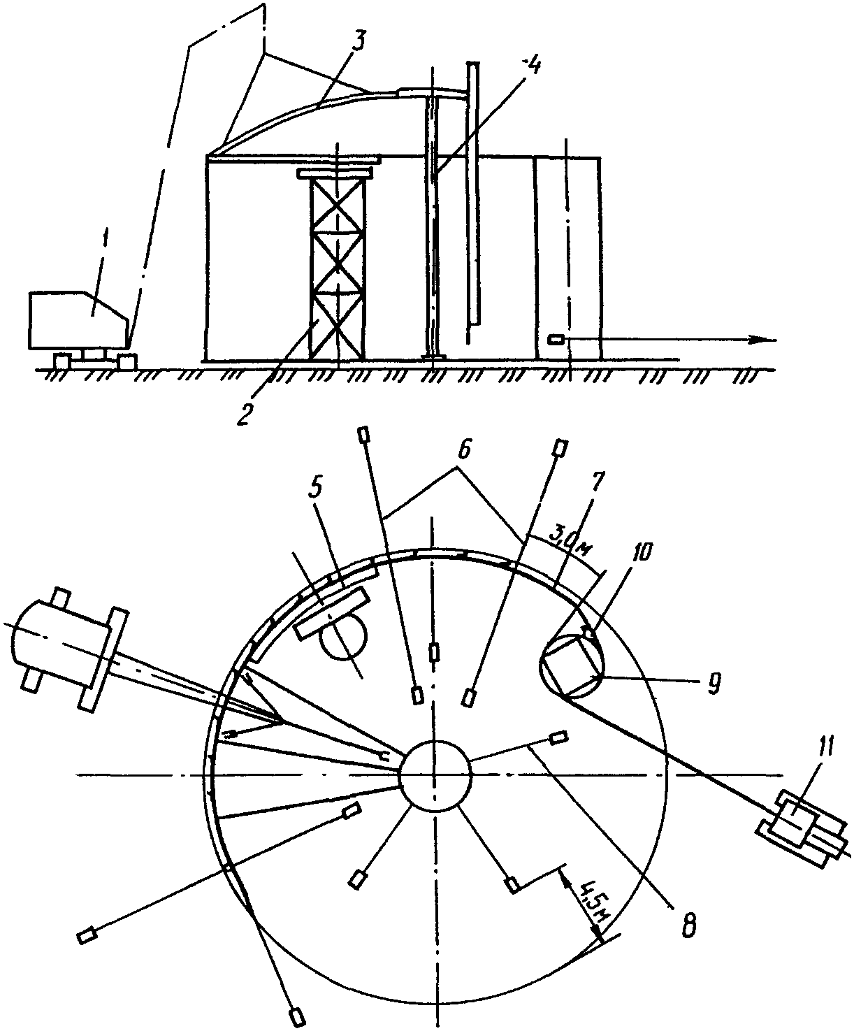 3 - разгрузочная рампа; 4 - разгрузочные балки;