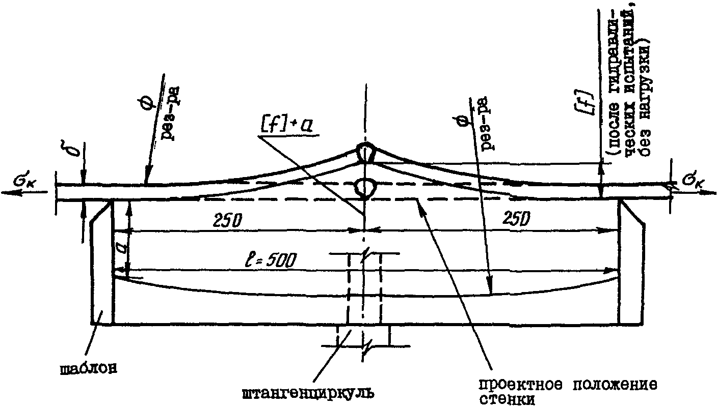 1 - стенка резервуара; 2 - теоретическая вертикаль