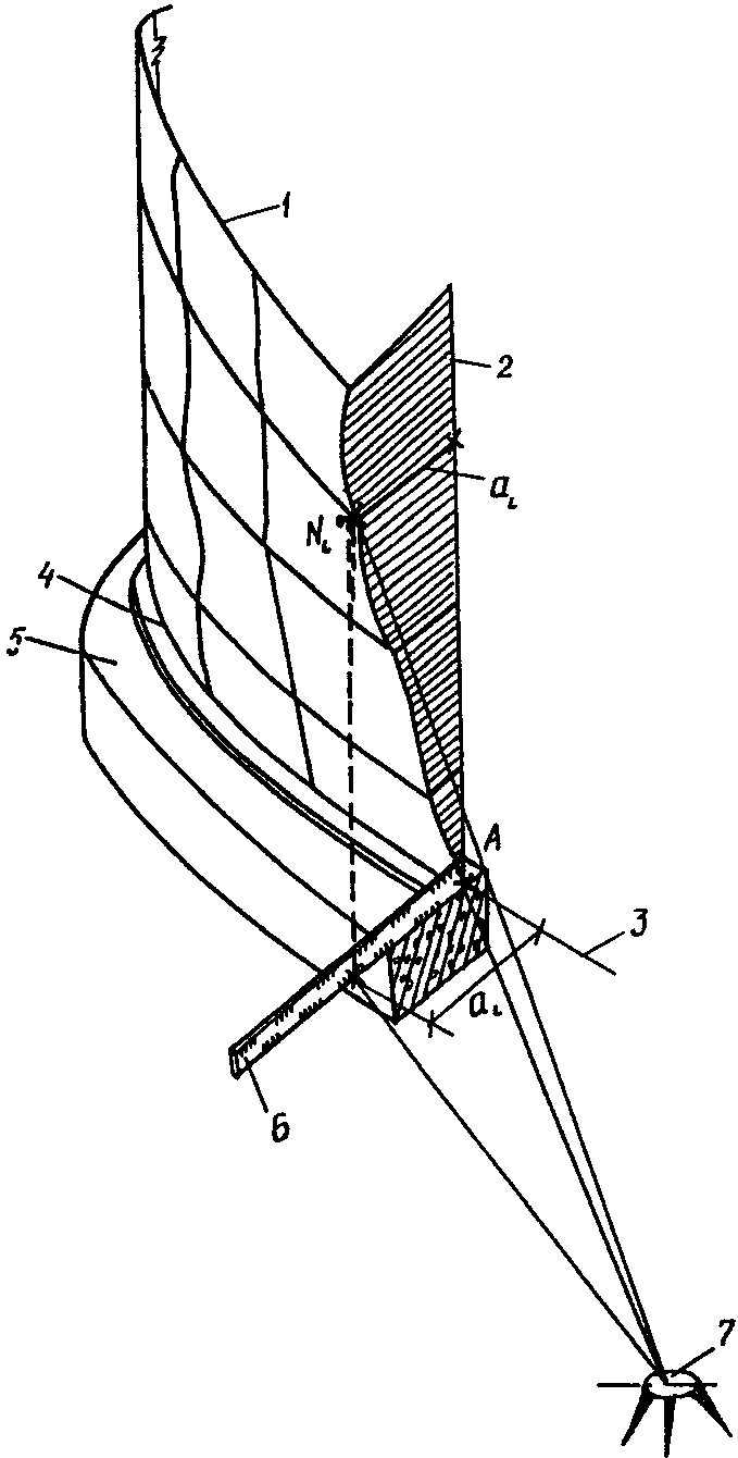 4. Производится визирование на пересечение сварных швов, ребер жесткости или по намеченным точкам. Затем поворотом трубы теодолита вокруг горизонтальной оси визируемая точка проецируется на установленную ранее линейку (рейку). Отсчет по линейке в миллиметрах определяет отклонение визируемой точки от вертикали. Полученный отсчет записывается в журнал. Для следующей точки процедура повторяется.