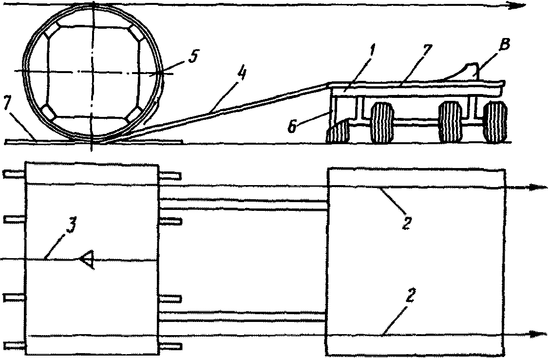 6 - платформа прикрытия; 7 - сцепной транспортер;