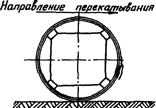 При наличии выровненной грунтовой поверхности с песчаной подсыпкой разрешается перекатывать рулоны (по ходу витков) на расстояние не более 50 м (черт. 4, а).