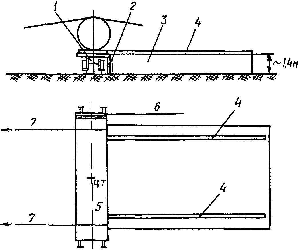 1 - железнодорожная платформа; 2 - опорные стойки;