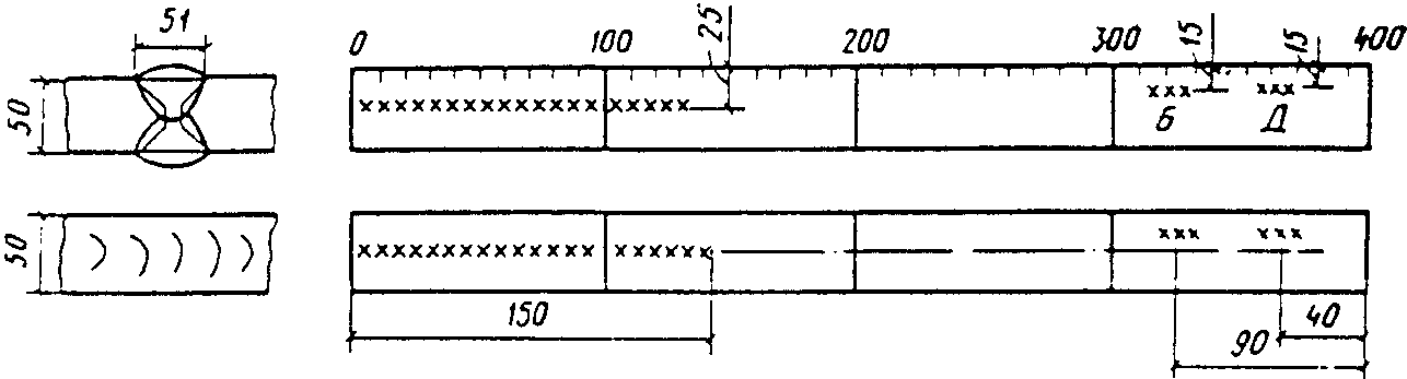 1.4. На сварное соединение, подлежащее контролю, должно быть поставлено клеймо сварщика. Внешний осмотр сварных соединений проводится по всей их длине для выявления несоответствия формы шва требованиям нормативно-технической документации и рабочих чертежей, трещин, наплывов, прожогов, незаваренных кратеров, свищей, пор и подрезов, пятен коротких замыканий электрода на основном металле и других дефектов.