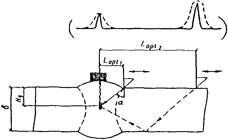 соотношение ширины валика (размеров катетов в угловых, тавровых и нахлесточных) в стыковых соединениях и толщины металла в соединении обеспечивает возможность прозвучивания всего сечения шва акустической осью ультразвукового луча;