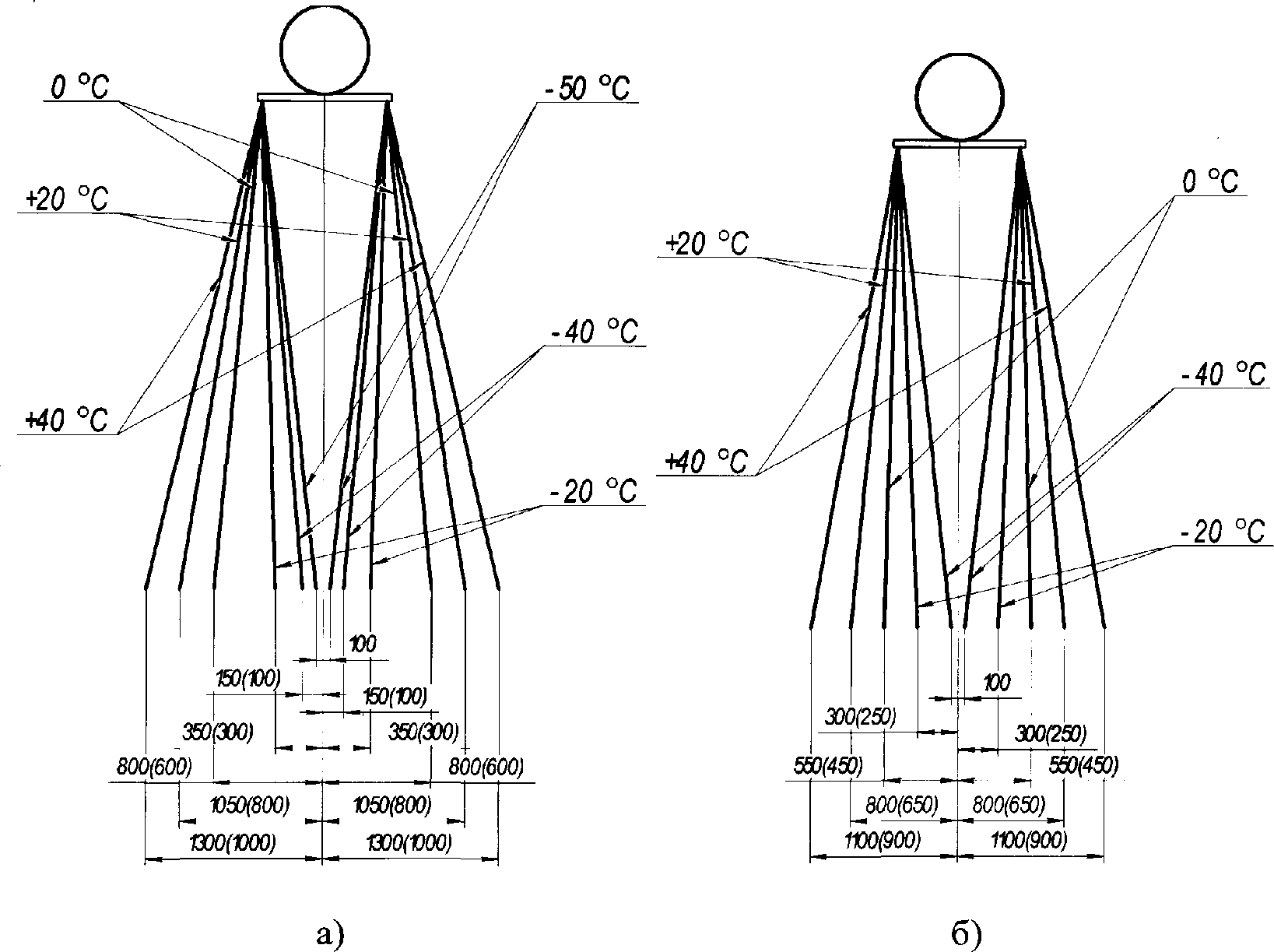 При незамерзших грунтах для оттяжек могут быть использованы спиралеобразные анкеры длиной 1,8 м с ушком на верхнем конце; для оттяжек используют, как правило, стальной трос сечением 70 мм2.