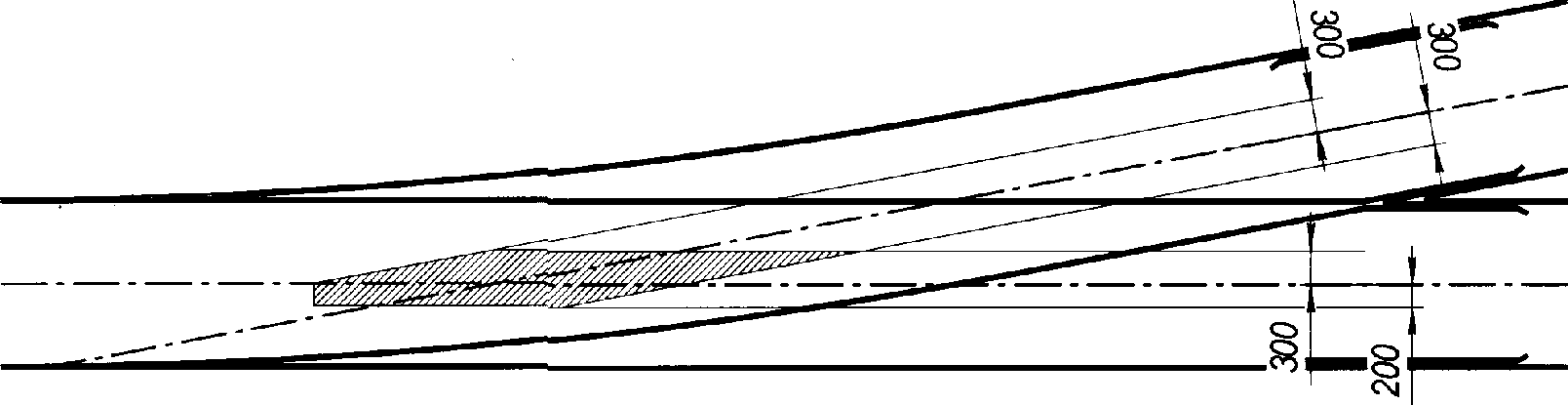 Временная гибкая поперечина, перекрывающая до восьми путей, может быть сооружена на одиночных железобетонных стойках длиной 13,6 м, установленных в стаканные фундаменты длиной 4,5 м и укрепленных оттяжками.