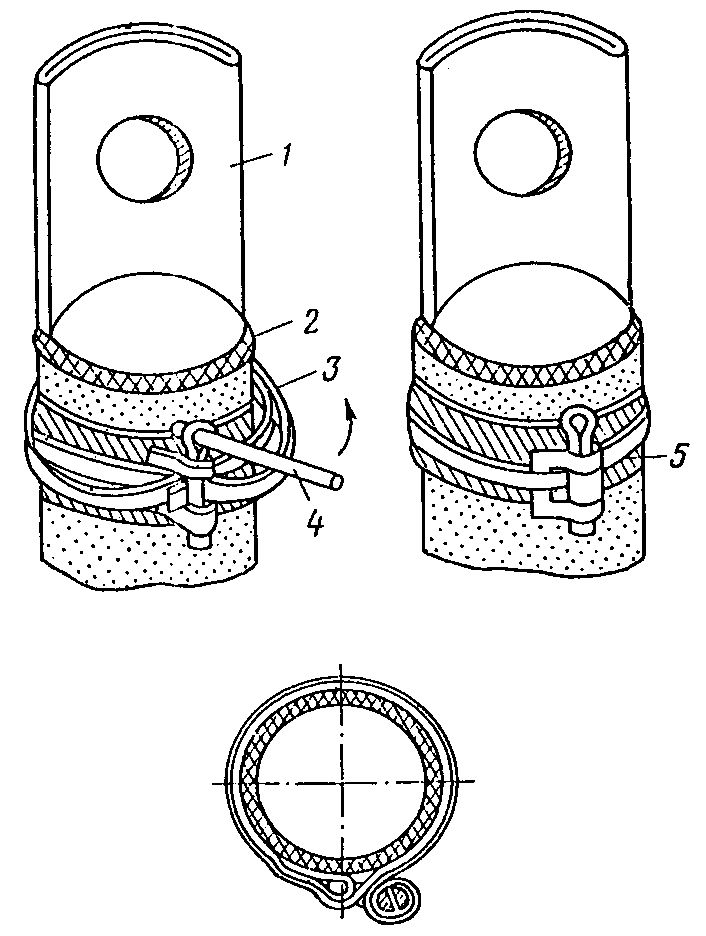 15 - болт; 16 - втулка; 17 - бандаж; 18, 19 - резиновые