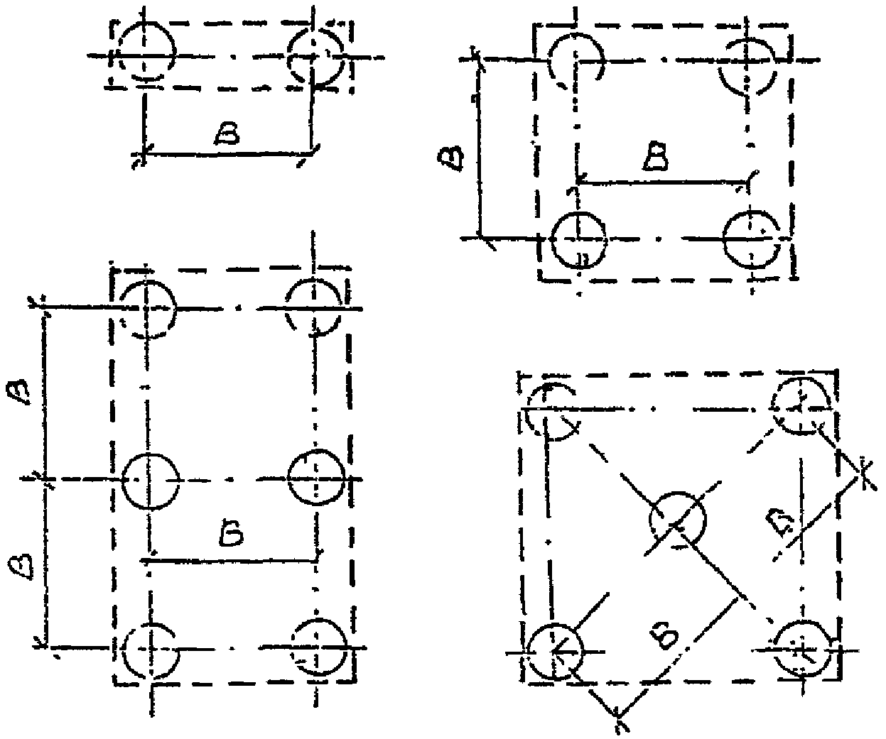 2.3.3. По грунтовым условиям и конструкции фундамента сваи в этом типе фундаментов должны работать как висячие, и поэтому они располагаются под фундаментной плитой по сетке с расстояниями между осями свай 5 - 7 диаметров (поперечных размеров).