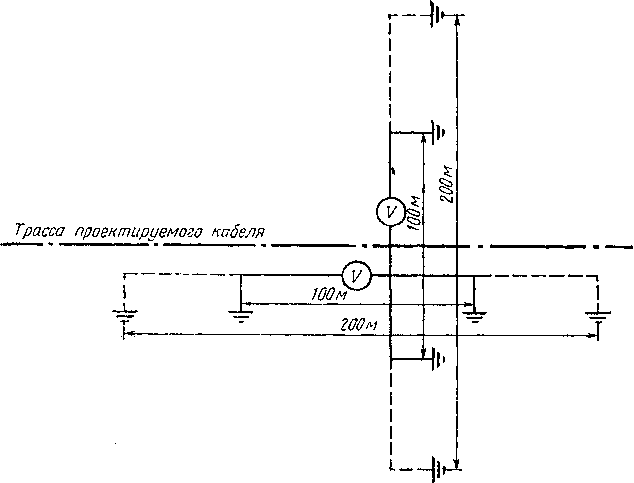 измерение удельного сопротивления грунта вблизи каждой соединительной муфты на расстоянии 1 м от кабеля перпендикулярно к нему;