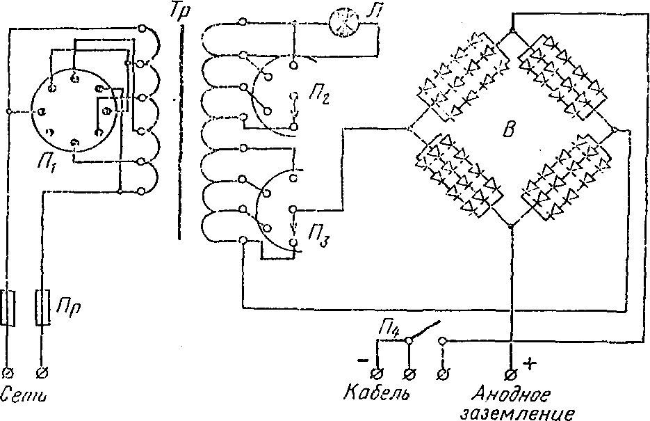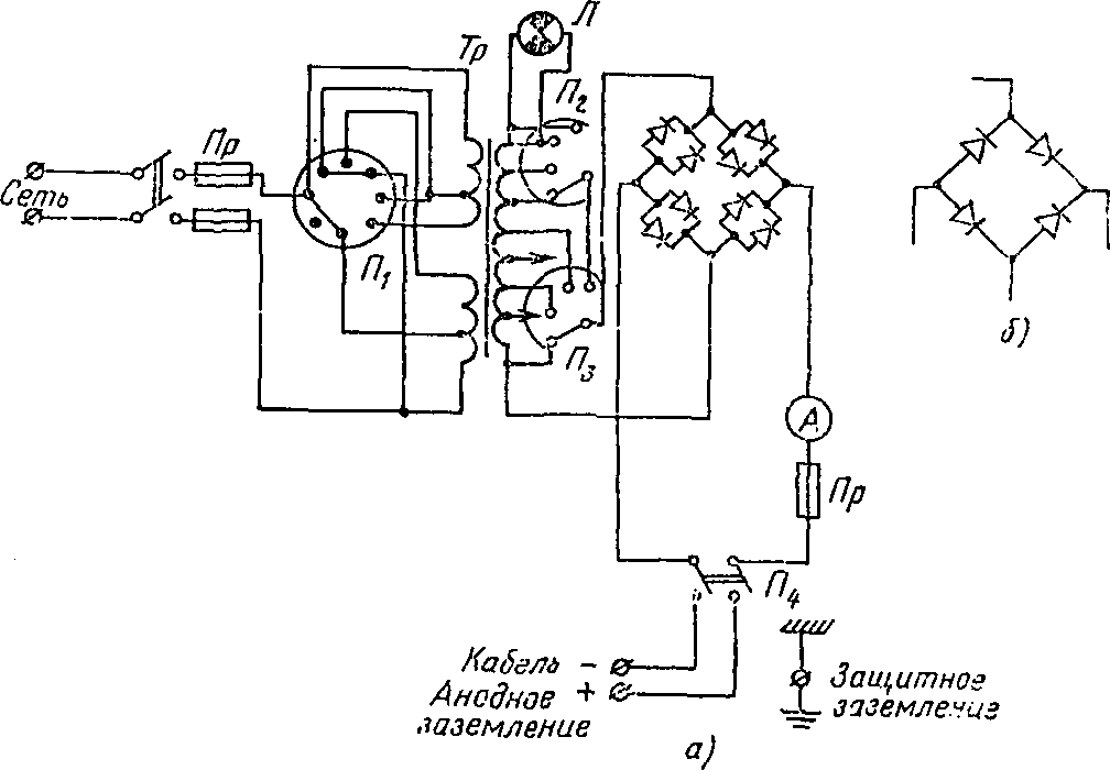 Токоотводы поляризованные | - | установки, в цепь которых включены вентильные элементы (диоды) соответствующей мощности, обеспечивающие прохождение электрического тока только в одном направлении. Поляризованные токоотводы устанавливаются в знакопеременных зонах, на подземных сооружениях. |