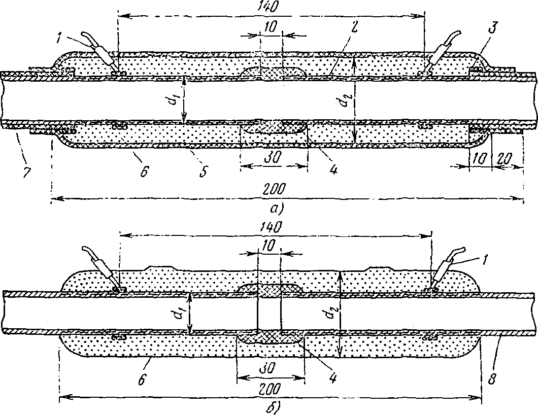 4.8. Подготовительные работы производятся на каждой соединительной муфте участка кабеля, подлежащего защите. В состав подготовительных работ входят: откопка котлованов, снятие чугунной муфты и удаление перепаек, визуальный осмотр состояния брони и оболочки на участках, прилегающих к муфте, отбор проб грунта, джута и подушки, ремонт оболочки в случае наличия коррозионных повреждений, вывод проводов на КИП, закопка котлованов, установка изолирующих муфт по концам участка, подлежащего защите.