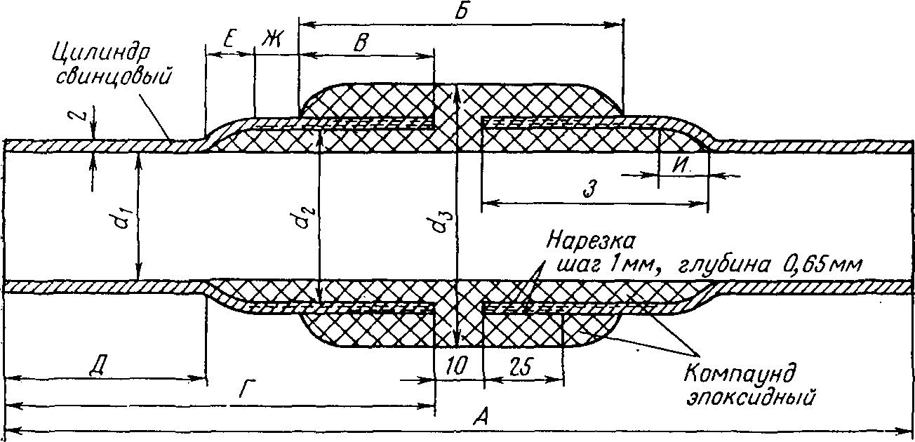 4.2. Электрохимическая защита свинцовой оболочки должна осуществляться так, чтобы создаваемые потенциалы на всей поверхности оболочки находились в пределах -0,7 - -1,3 В по отношению к медносульфатному электроду сравнения.