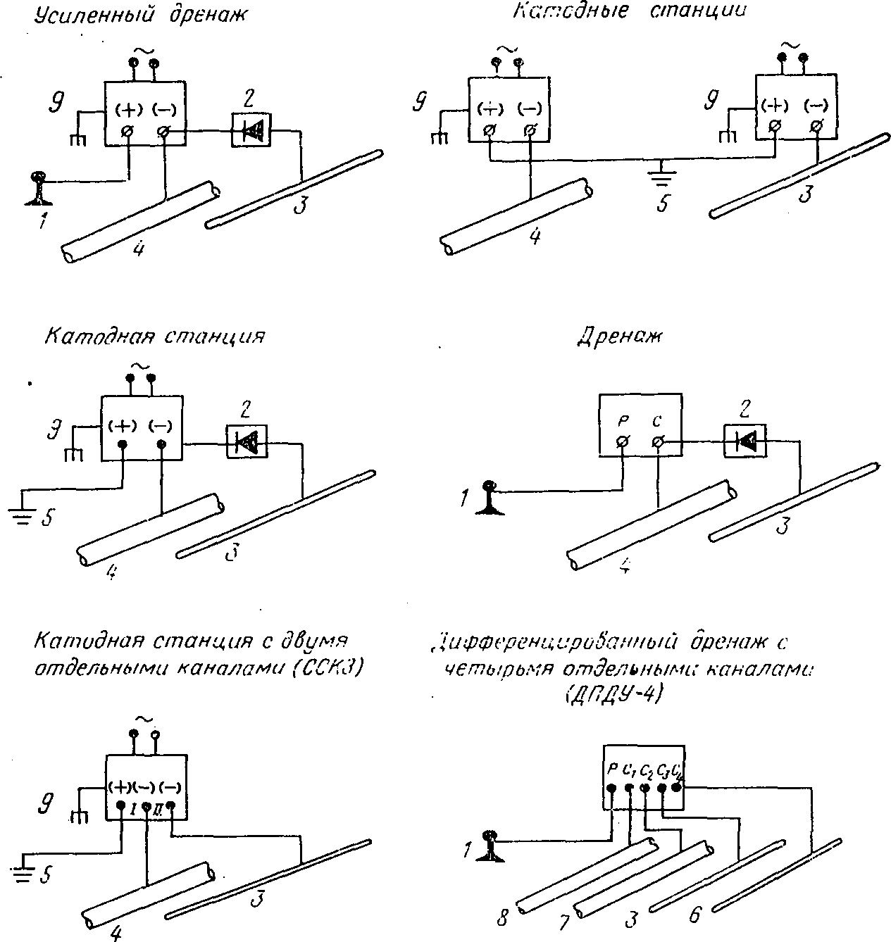 Токоотводы | - | установки для защиты подземных металлических сооружений дополнительными заземлениями, размещенными вблизи источника блуждающих токов. |
