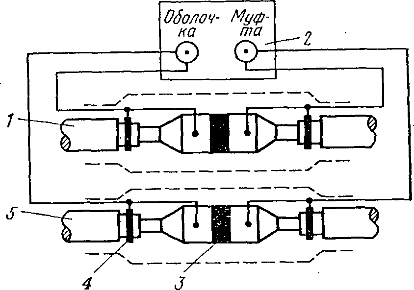 4.4. При осуществлении защиты (протекторной, катодной) распределение защитного тока с целью достижения требуемых защитных потенциалов осуществляется с помощью сопротивления, включаемого между оболочкой и броней кабеля на клеммах контрольно-измерительного пункта. Величина сопротивления выбирается в процессе наладки защиты и находится в пределах 0,5 - 5,0 Ом.