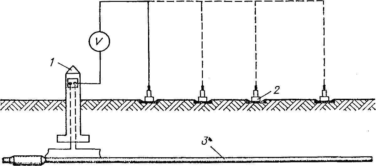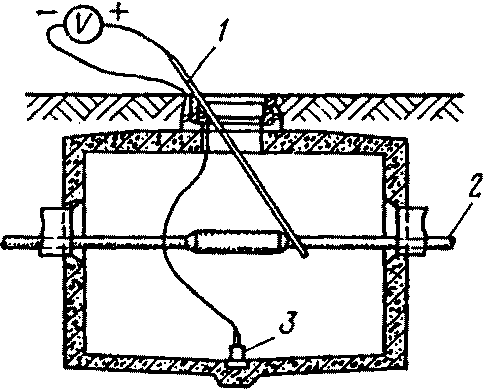 Потенциал подземного металлического сооружения | - | условно принимаемая разность электрических потенциалов между металлом подземного сооружения и точкой окружающей среды (земли), по отношению к которой производится измерение. |