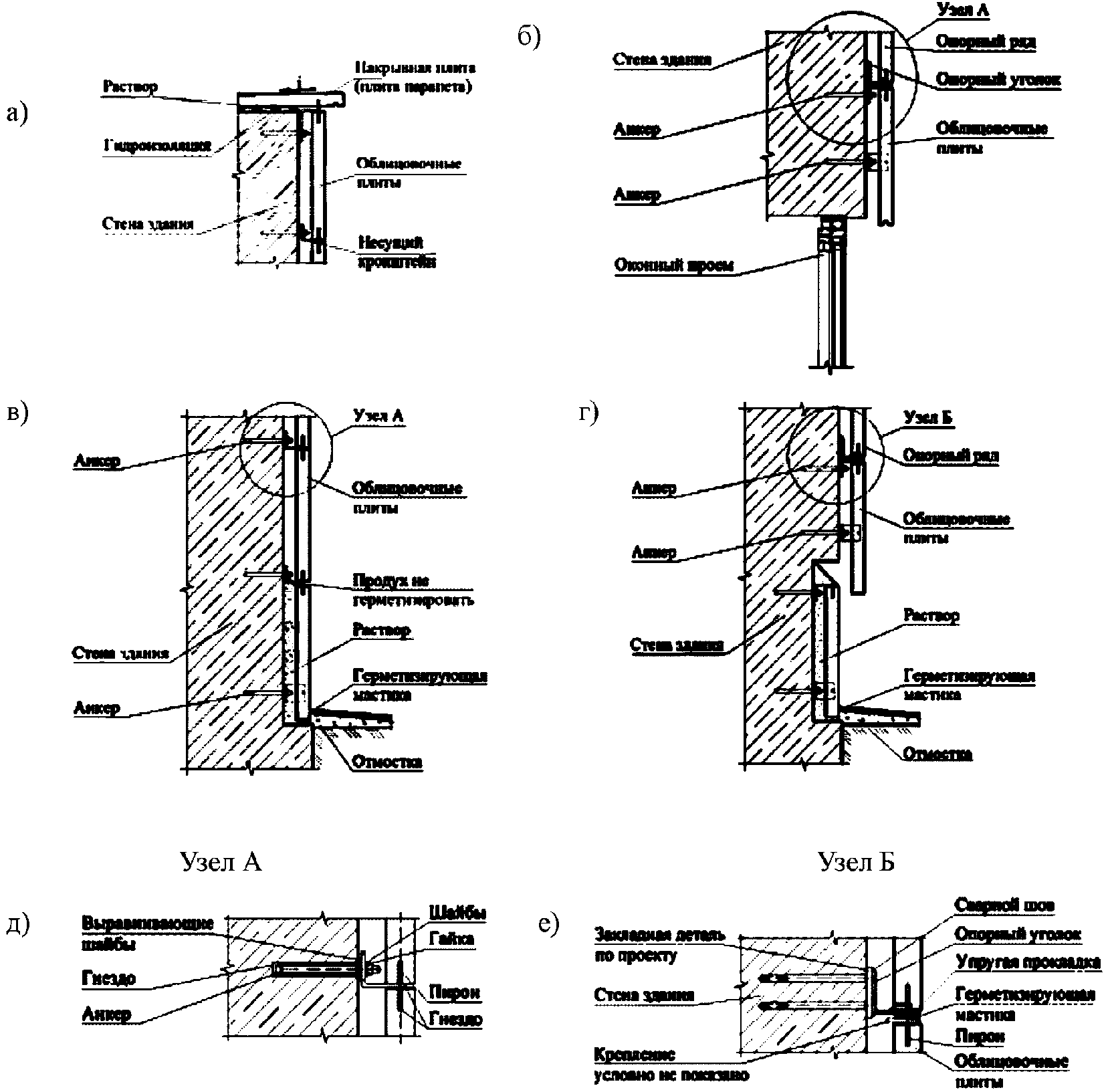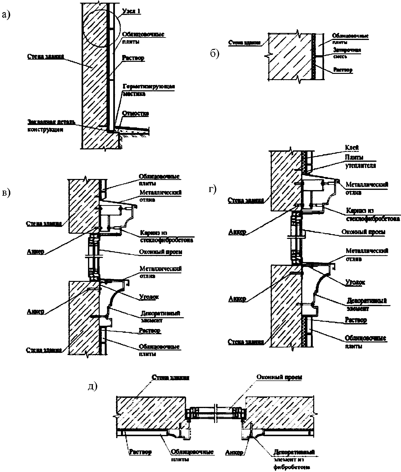 | Технические решения крепления облицовочных изделий к наружным стенам зданий "на относе от стены" ("сухим способом") и рекомендации по их применению. МОСПРОЕКТ, ЦНИИСК им. В.А. Кучеренко, 1993 г. |