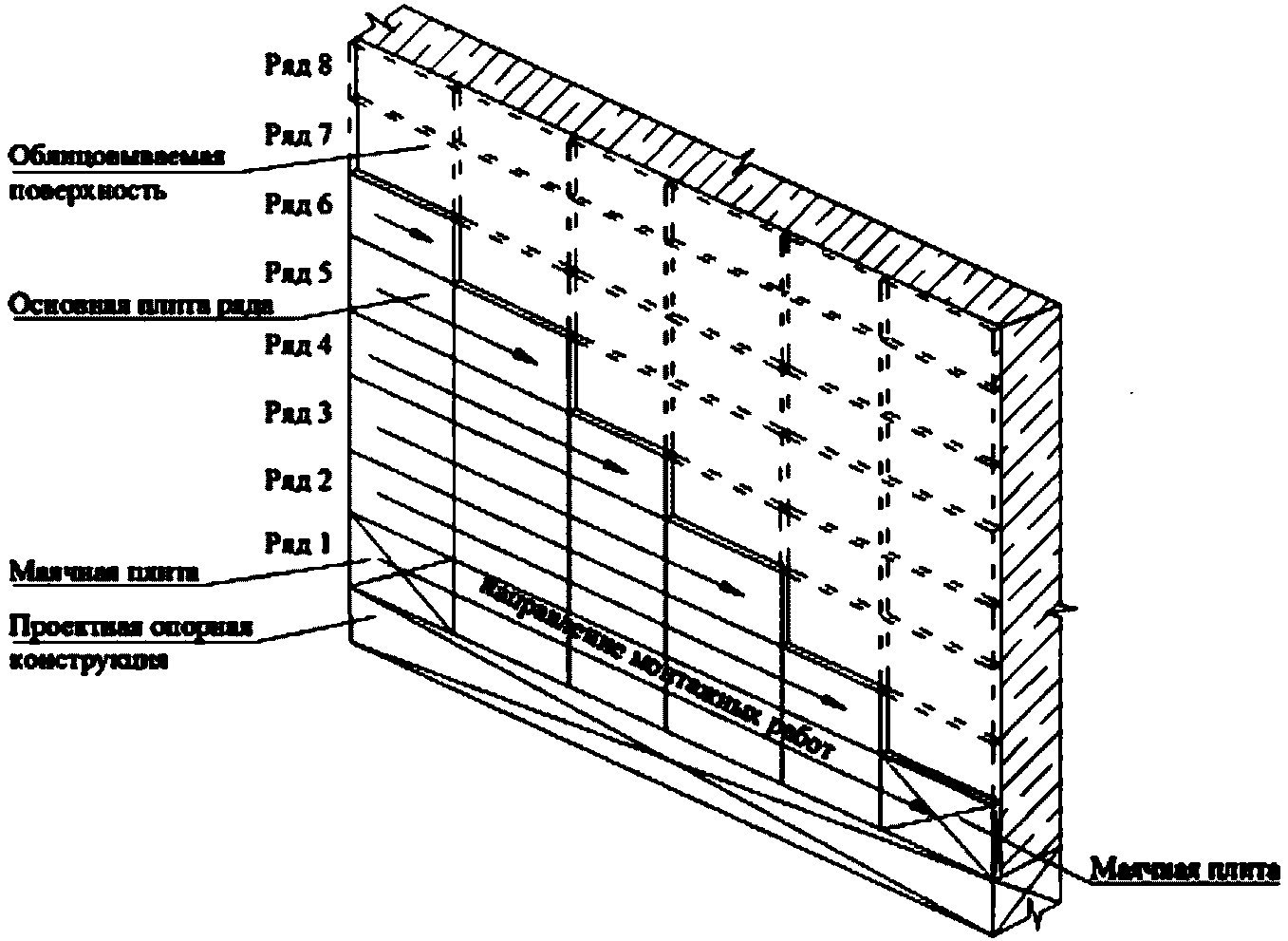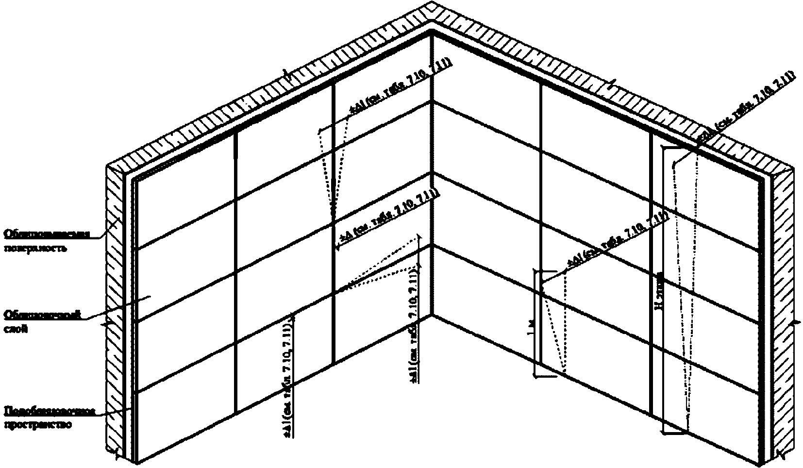 3.3 воздушный зазор: Воздушная прослойка между внутренней гранью облицовочных изделий и плоскостью облицовываемой поверхности.