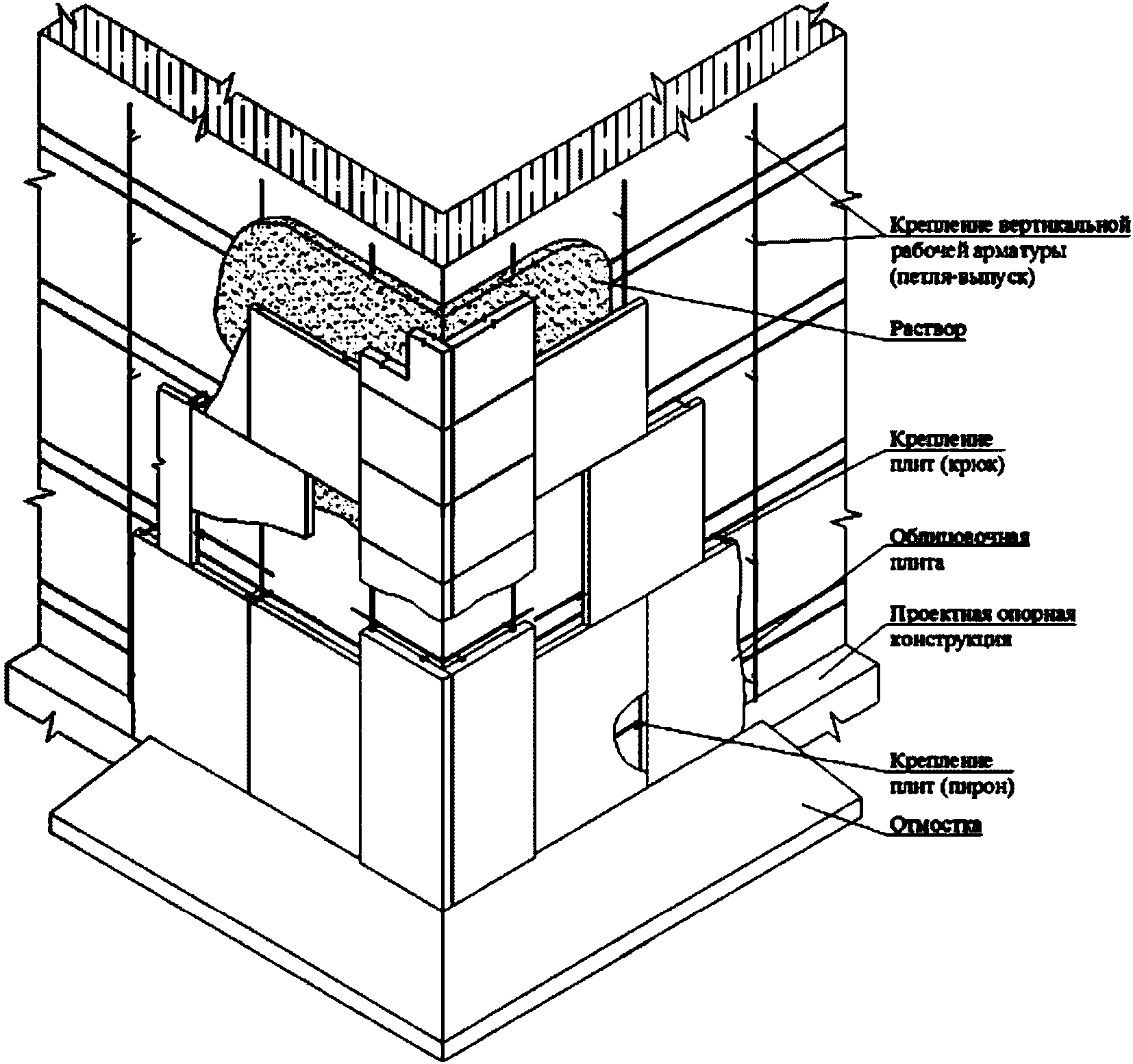 3.19 опорный пояс: Изделие или конструкция заводского изготовления, закрепляемая к основанию и обеспечивающая восприятие нагрузки от яруса облицовочного слоя.
