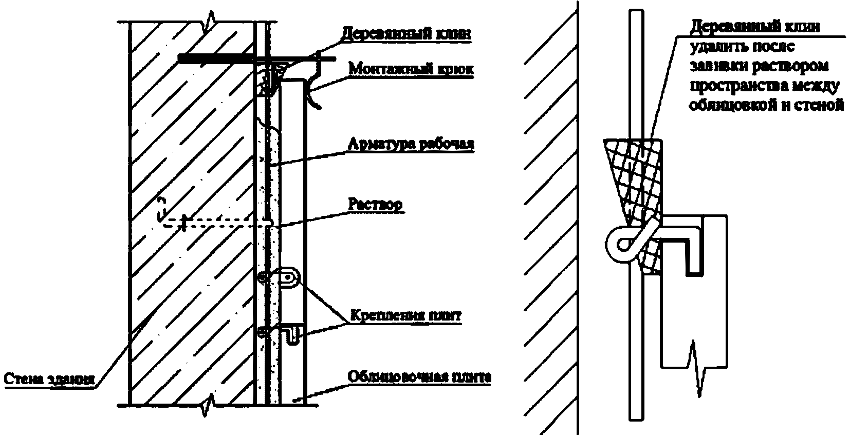 3.11 крюк: Металлический элемент, обеспечивающий крепление облицовочных элементов к арматурному каркасу при устройстве облицовочного слоя способом вывешивания яруса.
