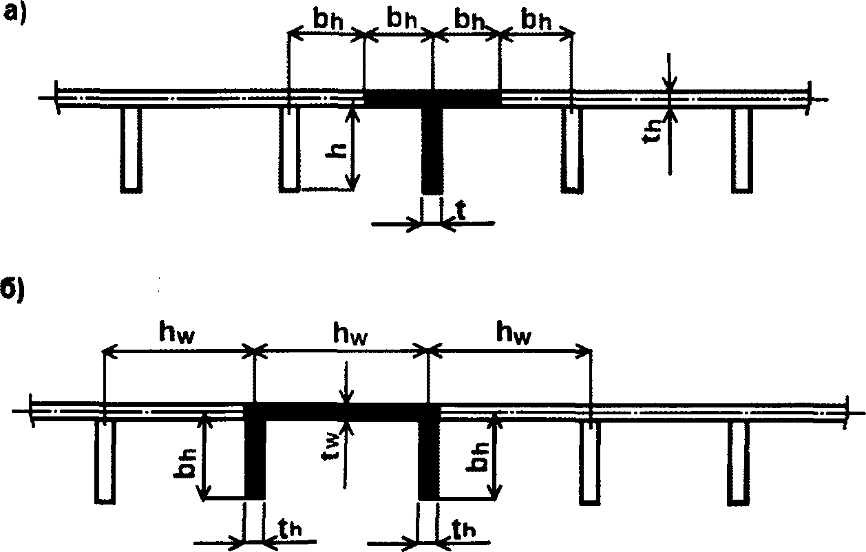 Для обеспечения местной устойчивости элементов таврового сечения продольного ребра толщина полки и стенки должна удовлетворять требованиям