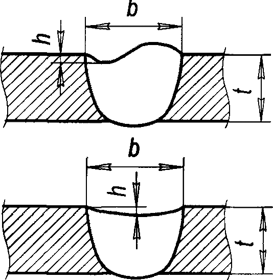 Размеры шва, мм | Ширина валика с 1-й стороны | Высота валика с 1-й стороны | Ширина валика со 2-й стороны | Высота валика со 2-й стороны | Катет шва |