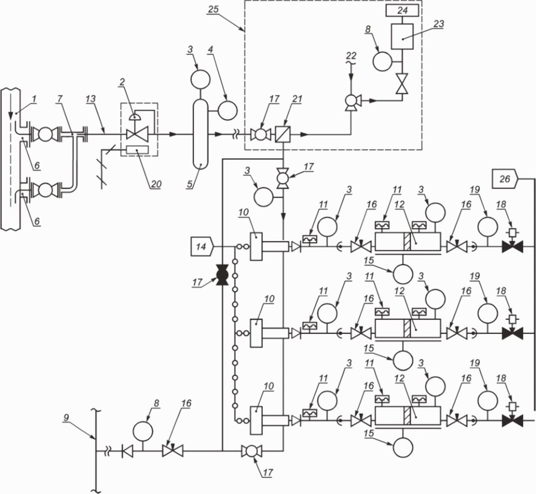 3.20 система пробоподготовки: Совокупность приспособлений, используемых для придания пробе сжиженного природного газа качеств, необходимых для корректного измерения его компонентного состава и физико-химических свойств без нарушения представительности отобранной пробы.