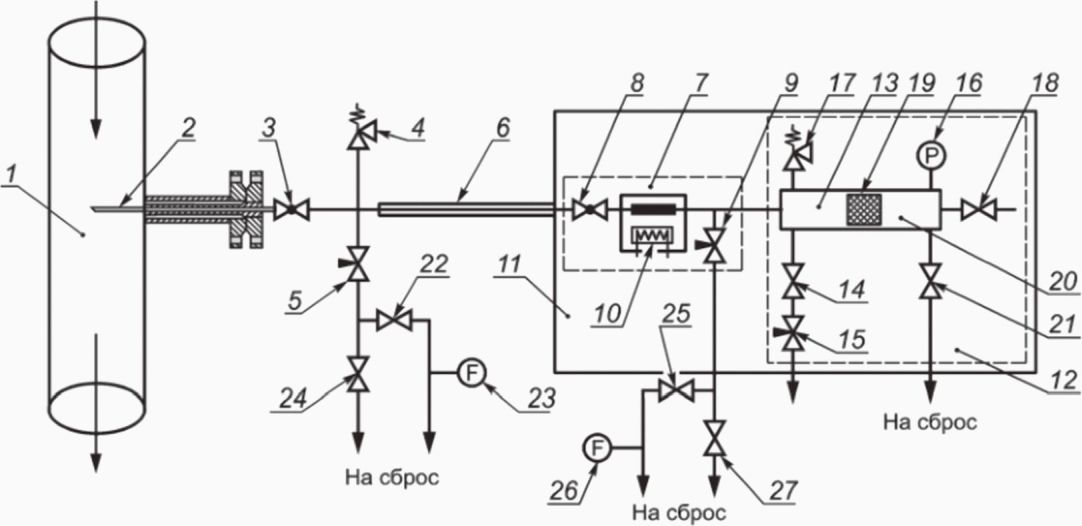 Примечание - В состав пробоотборного устройства входят, как правило, пробоотборный зонд, запорный вентиль или шаровой кран, а также при необходимости могут использоваться отдельные элементы системы пробоподготовки.