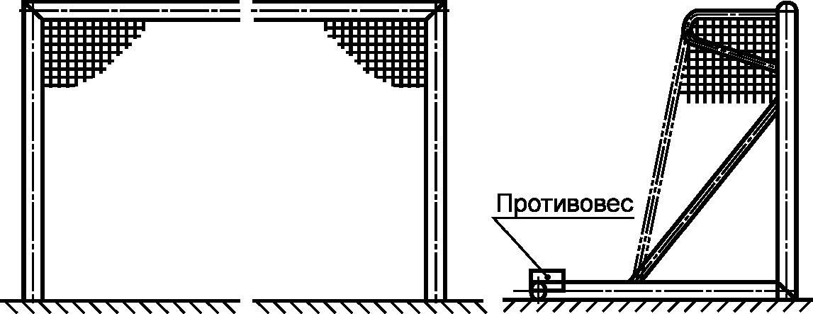 - рама ворот (две штанги, одна перекладина и наземная часть рамы с закрепленным на ней противовесом) с элементами крепления сетки, стойками натяжения сетки, включая угловые кронштейны;