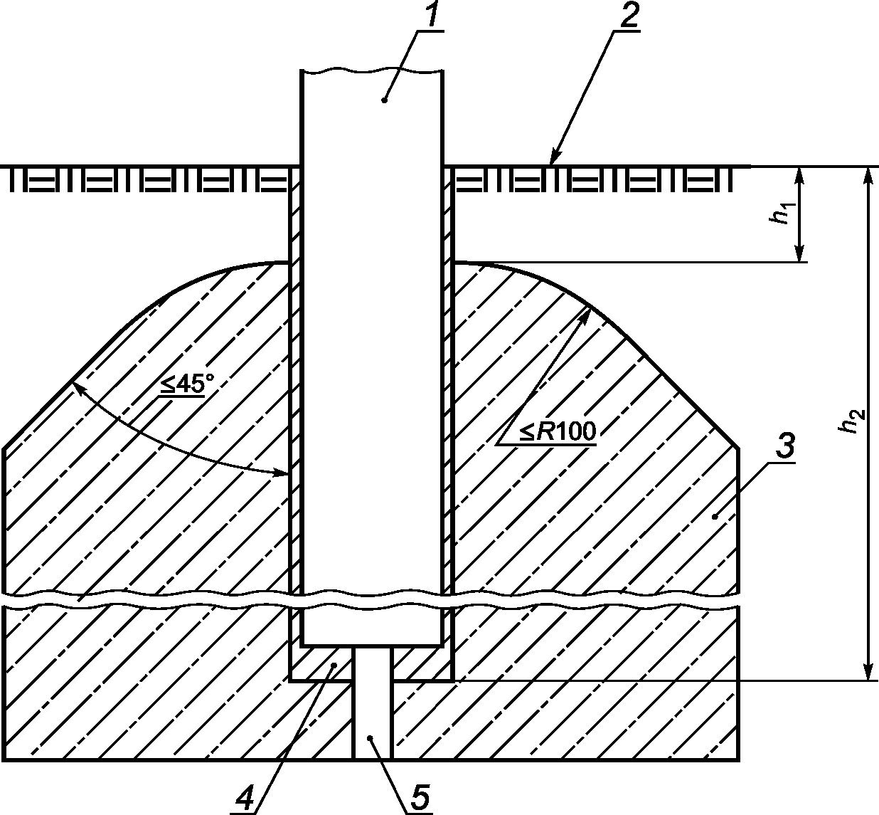 Г.1. Пример крепления установочной гильзы в бетонный блок показан на рисунке Г.1. Размеры h