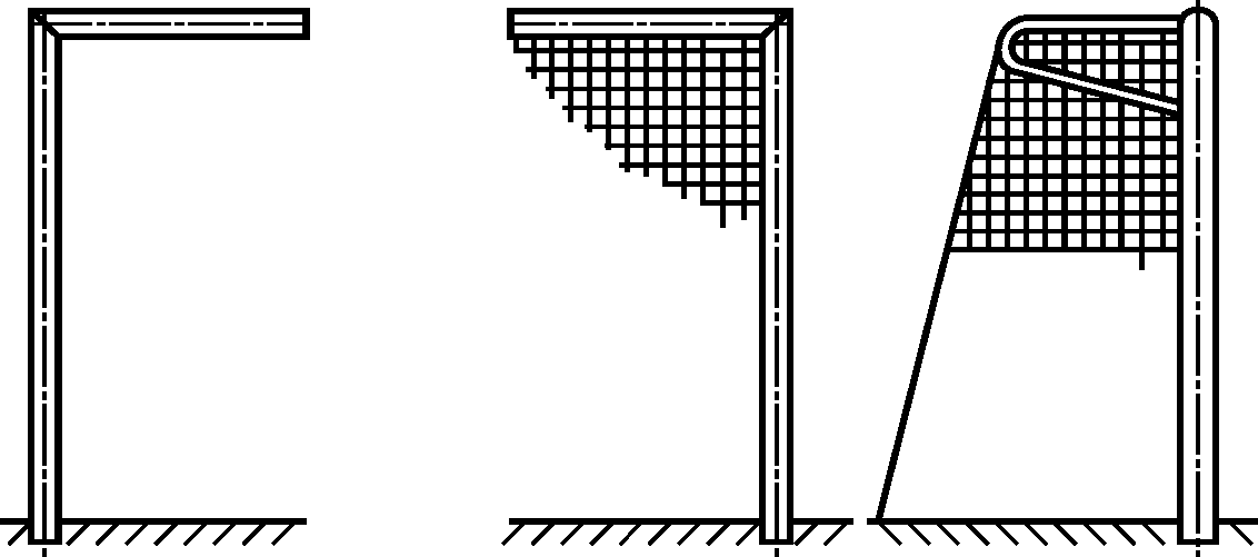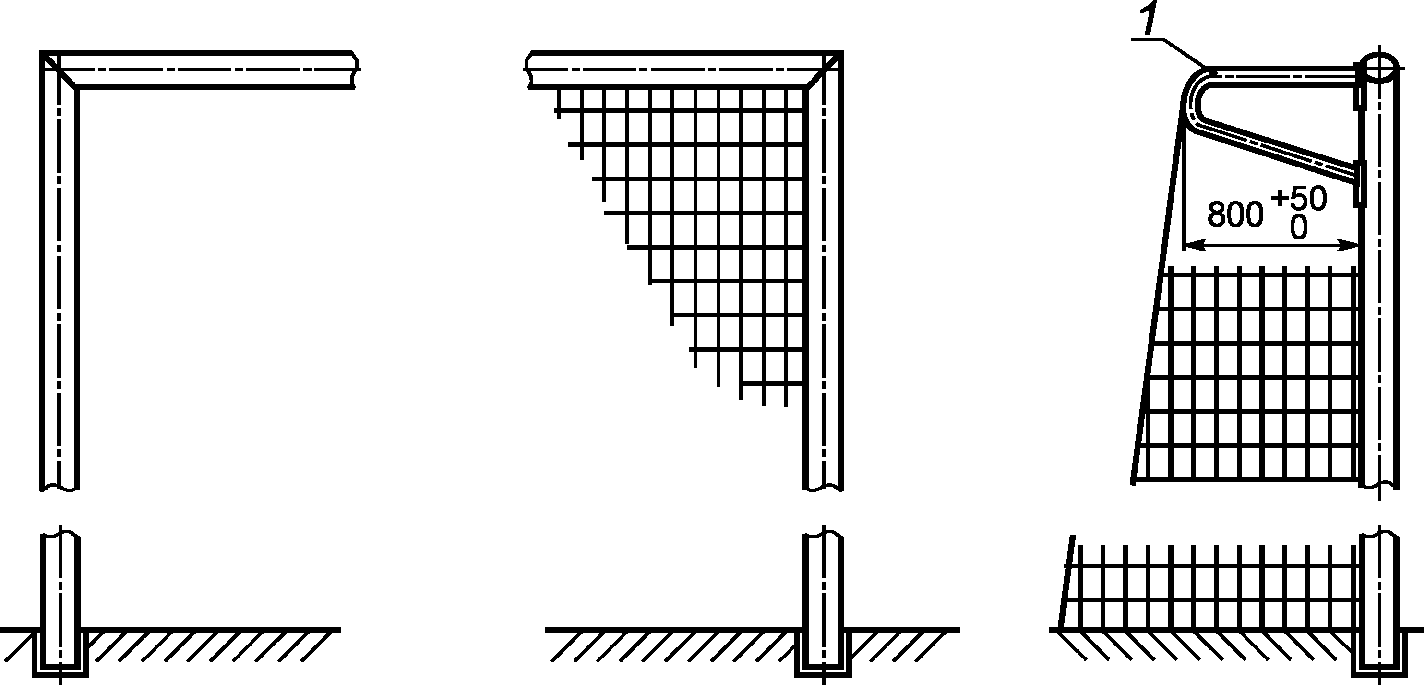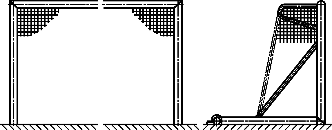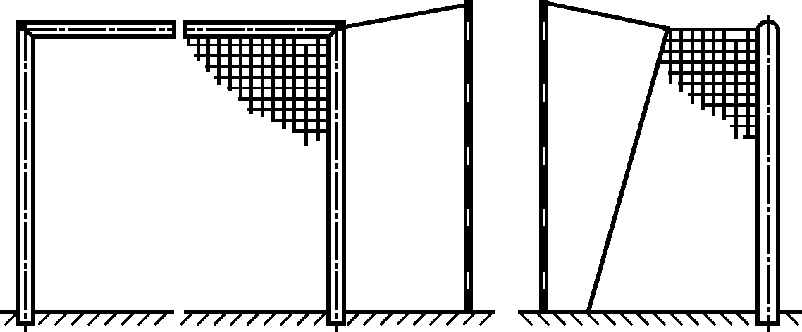 | | Футбольные ворота со штангами, закрепленными в установочных гильзах, и стойками натяжения |