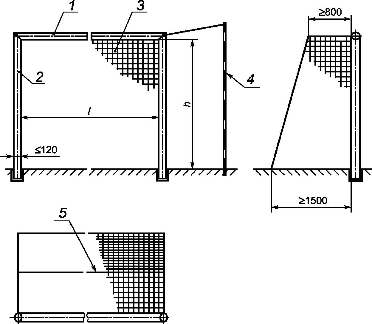 1 - перекладина; 2 - штанги; 3 - сетка;