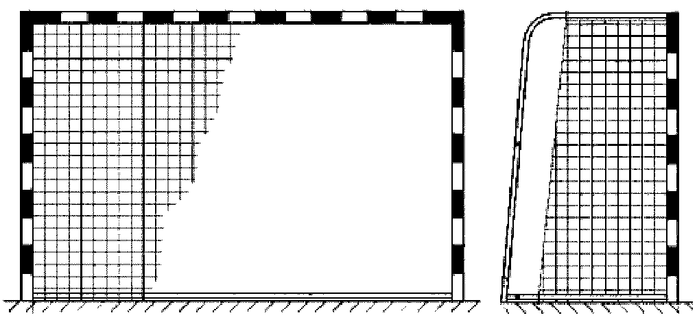 Сетка должна быть свободно закреплена на раме (не быть натянутой) таким образом, чтобы попавший в ворота мяч не мог отскочить от конструктивных элементов ворот. Закрепляющие элементы должны быть расположены снаружи сетки.