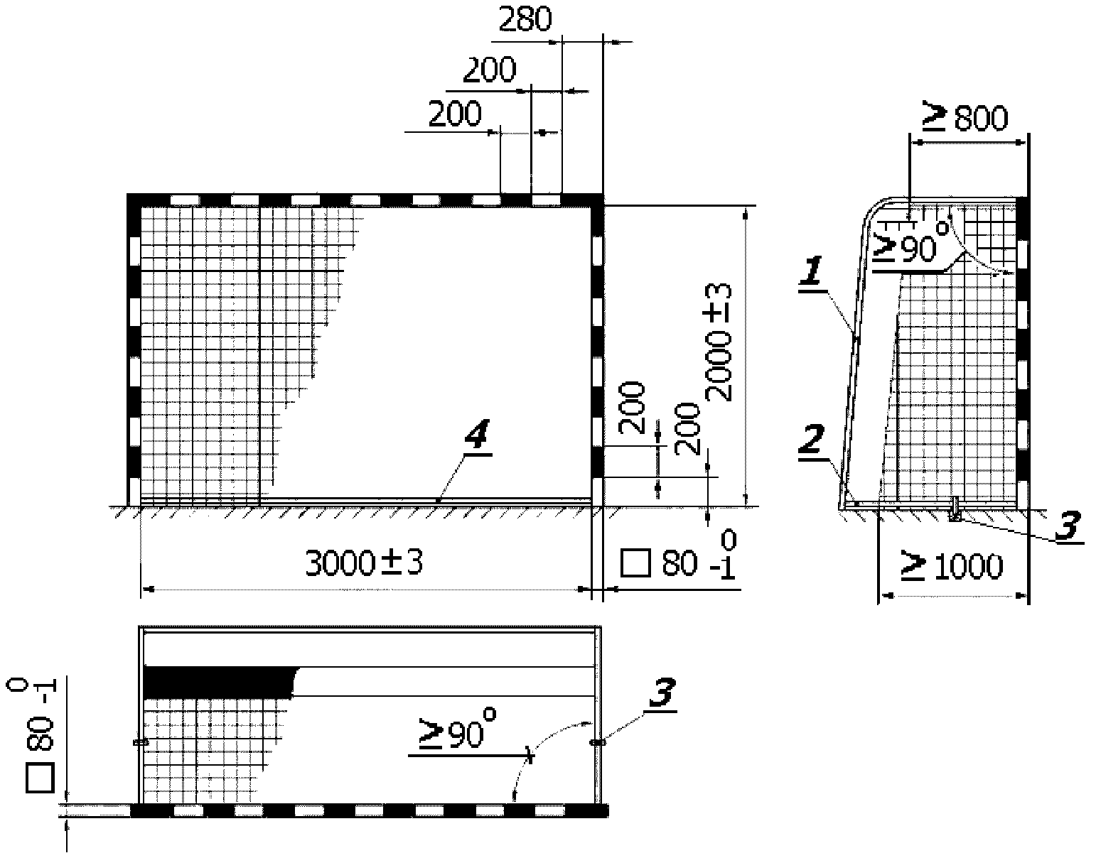 Размеры сетки должны соответствовать указанным в таблице 2.
