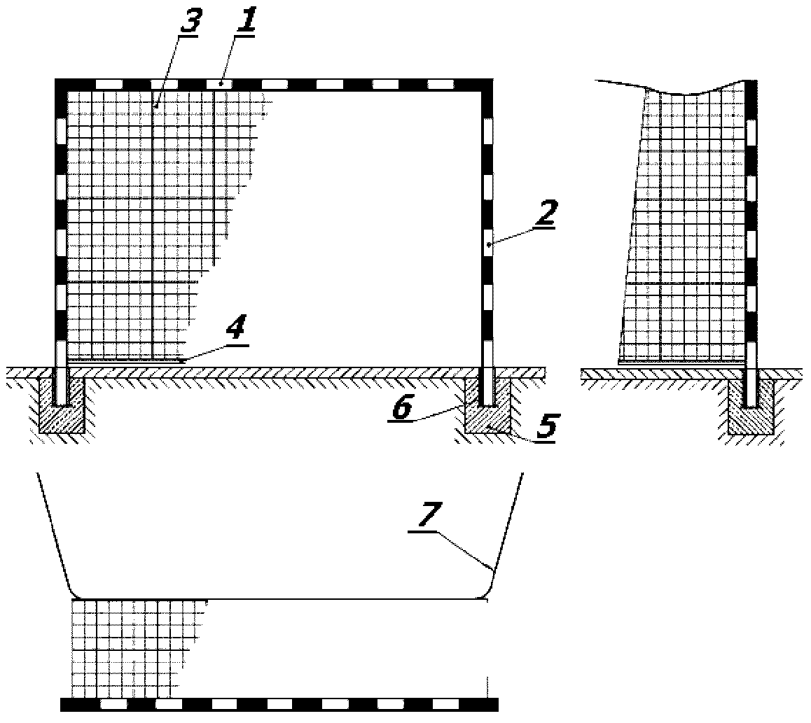 натяжения сетки; 5 - бетон; 6 - установочные гильзы;