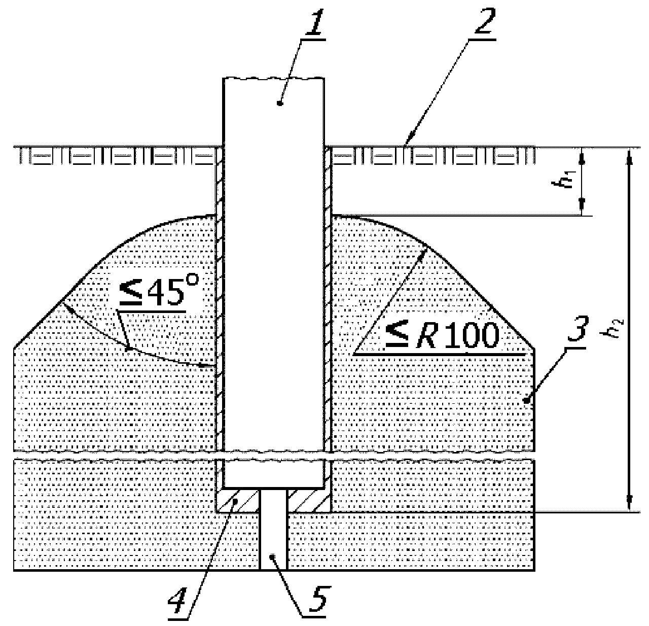 футбольного поля; 3 - бетон; 4 - установочная гильза;