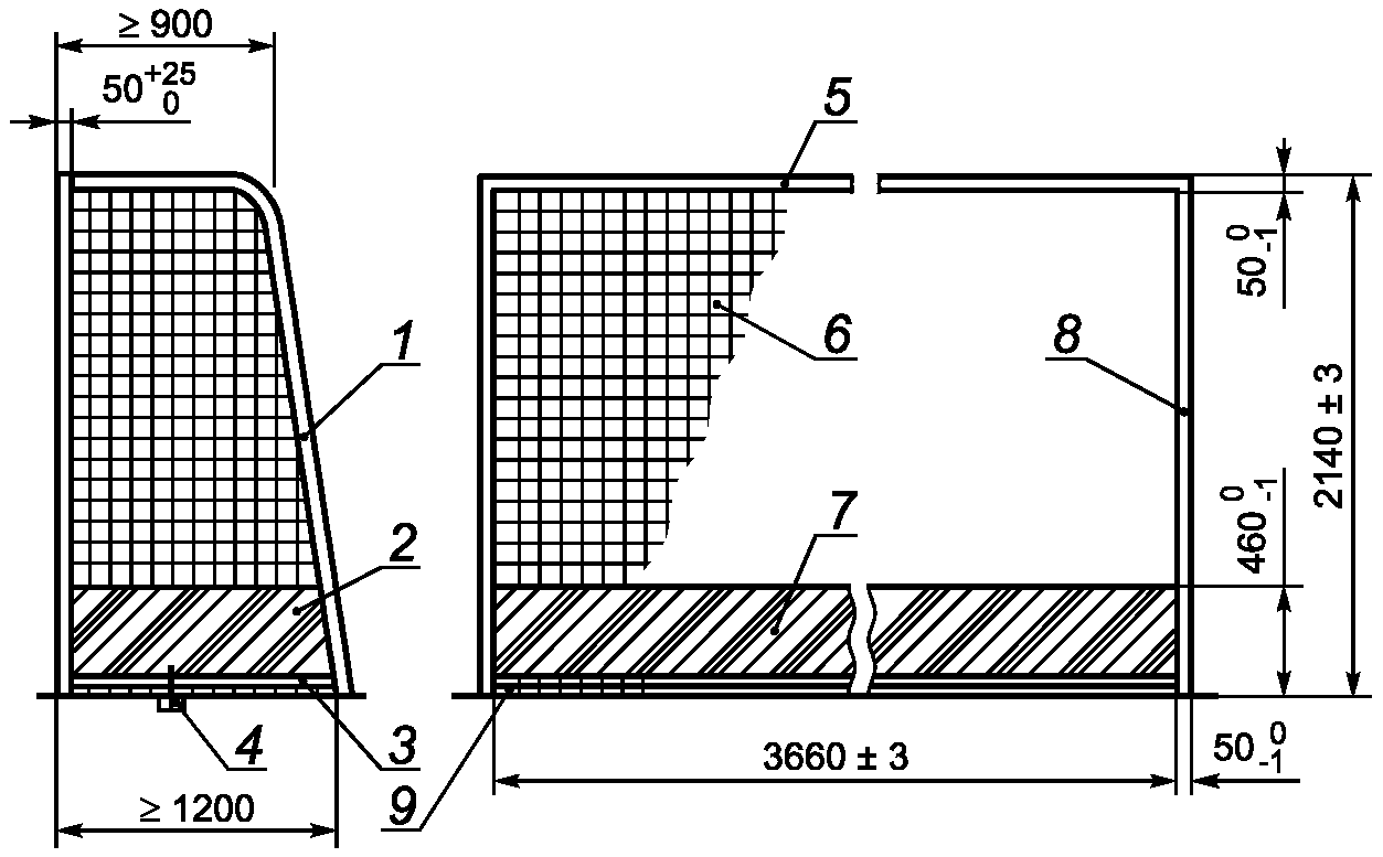 рисунке 1. Ворота для хоккея на траве состоят из следующих элементов: