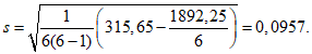 t - коэффициент Стьюдента при 95%-ной вероятности при числе степеней свободы