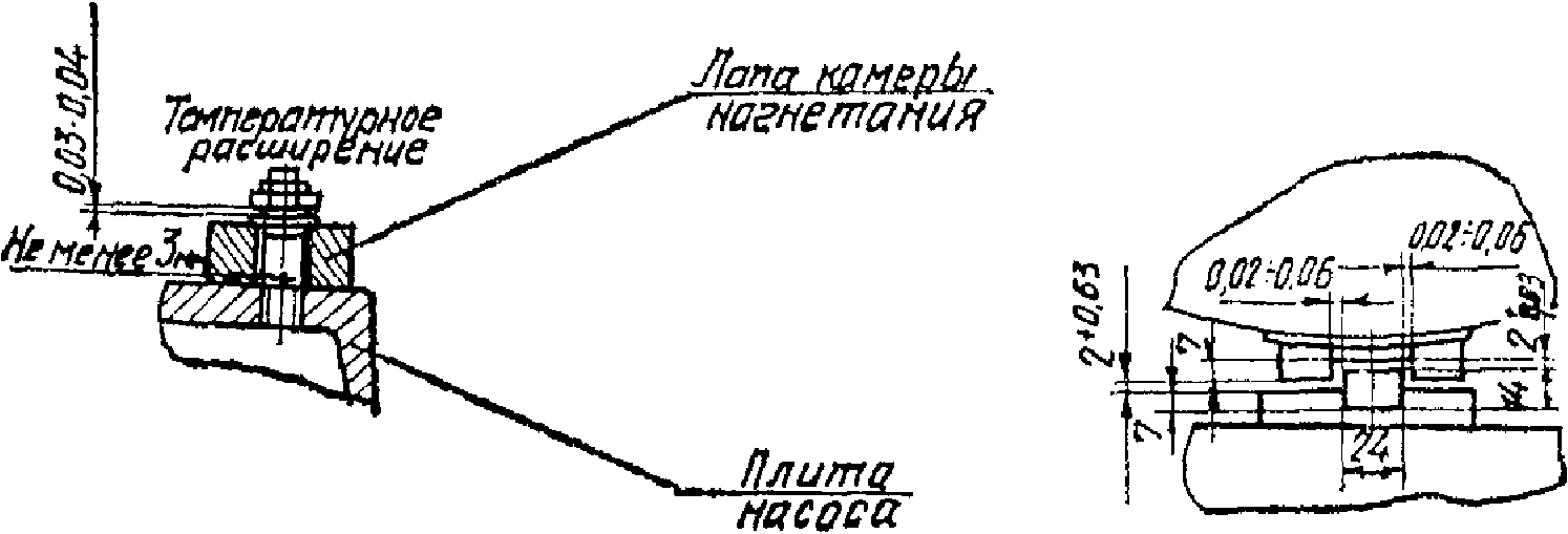 6.5.3. При проверке прилегания торцов крышек всасывания и нагнетания, сальниковых коробок и кронштейнов щуп толщиной 0,03 мм не должен проходить по плоскостям прилегания.