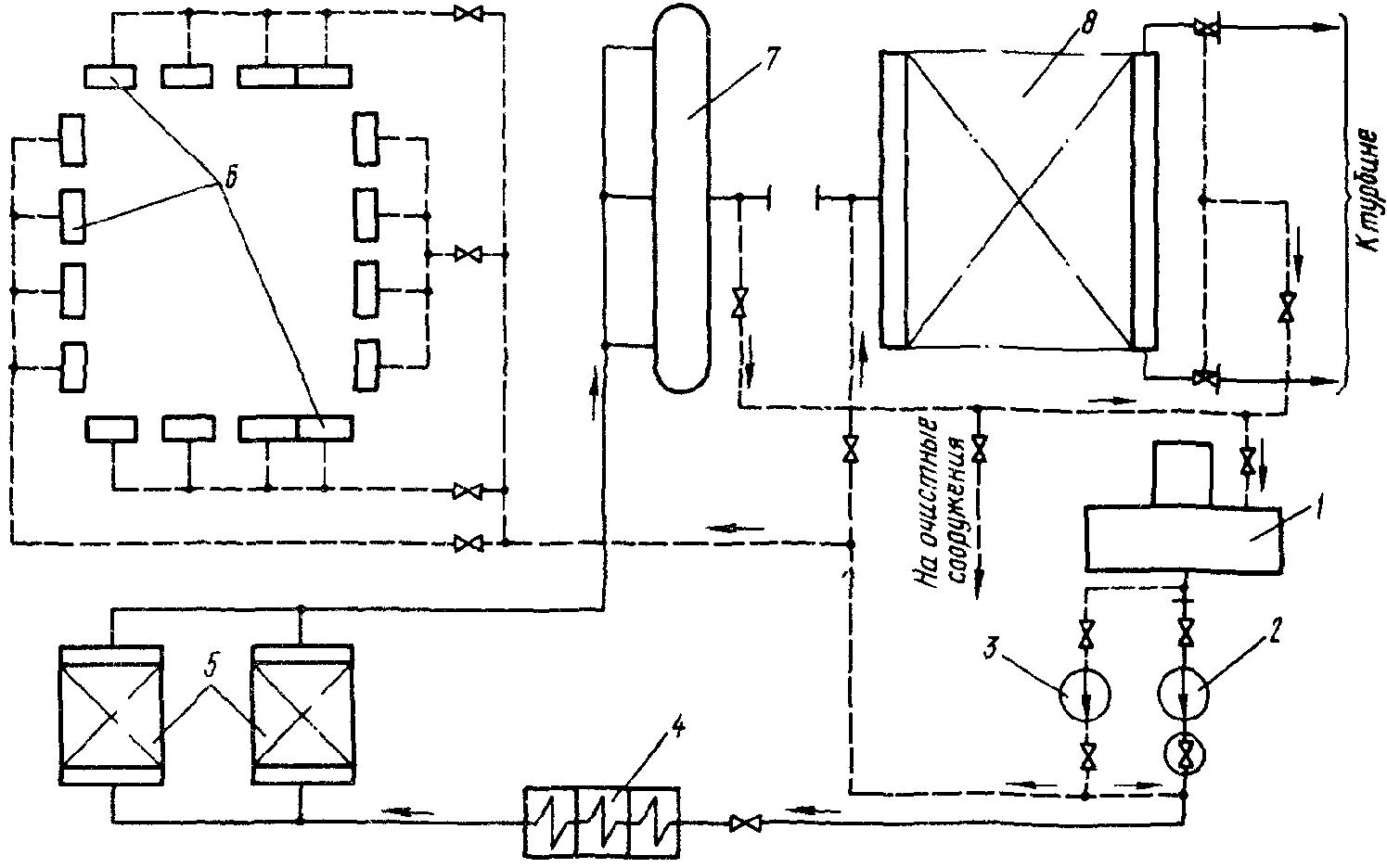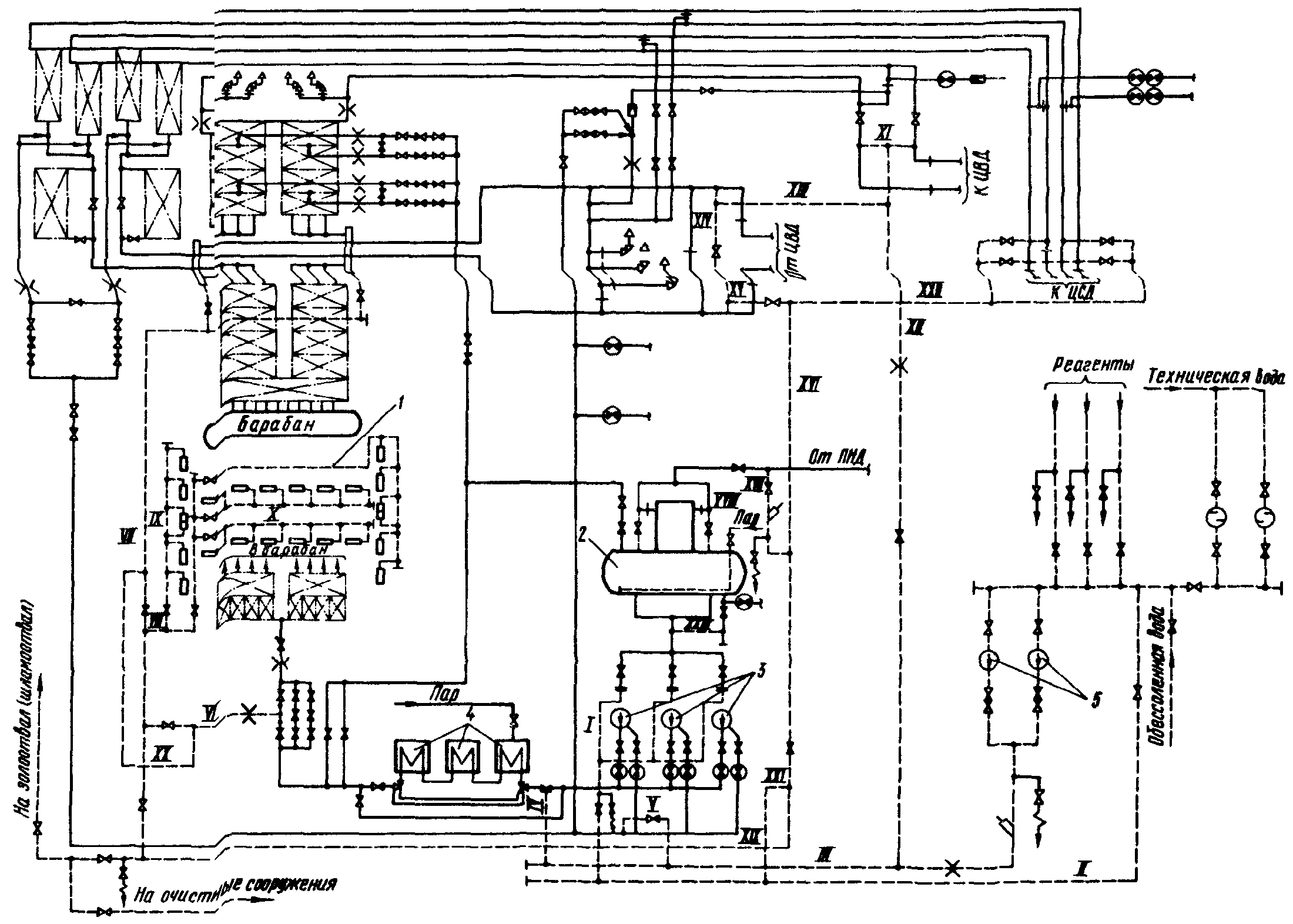 1 - деаэратор; 2 - питательный насос; 3 - насос химической