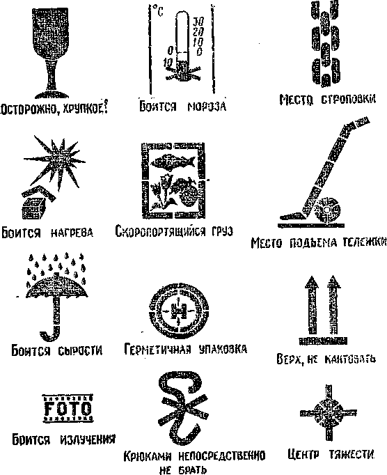 Рис. 1. Манипуляционные знаки и предупредительные надписи