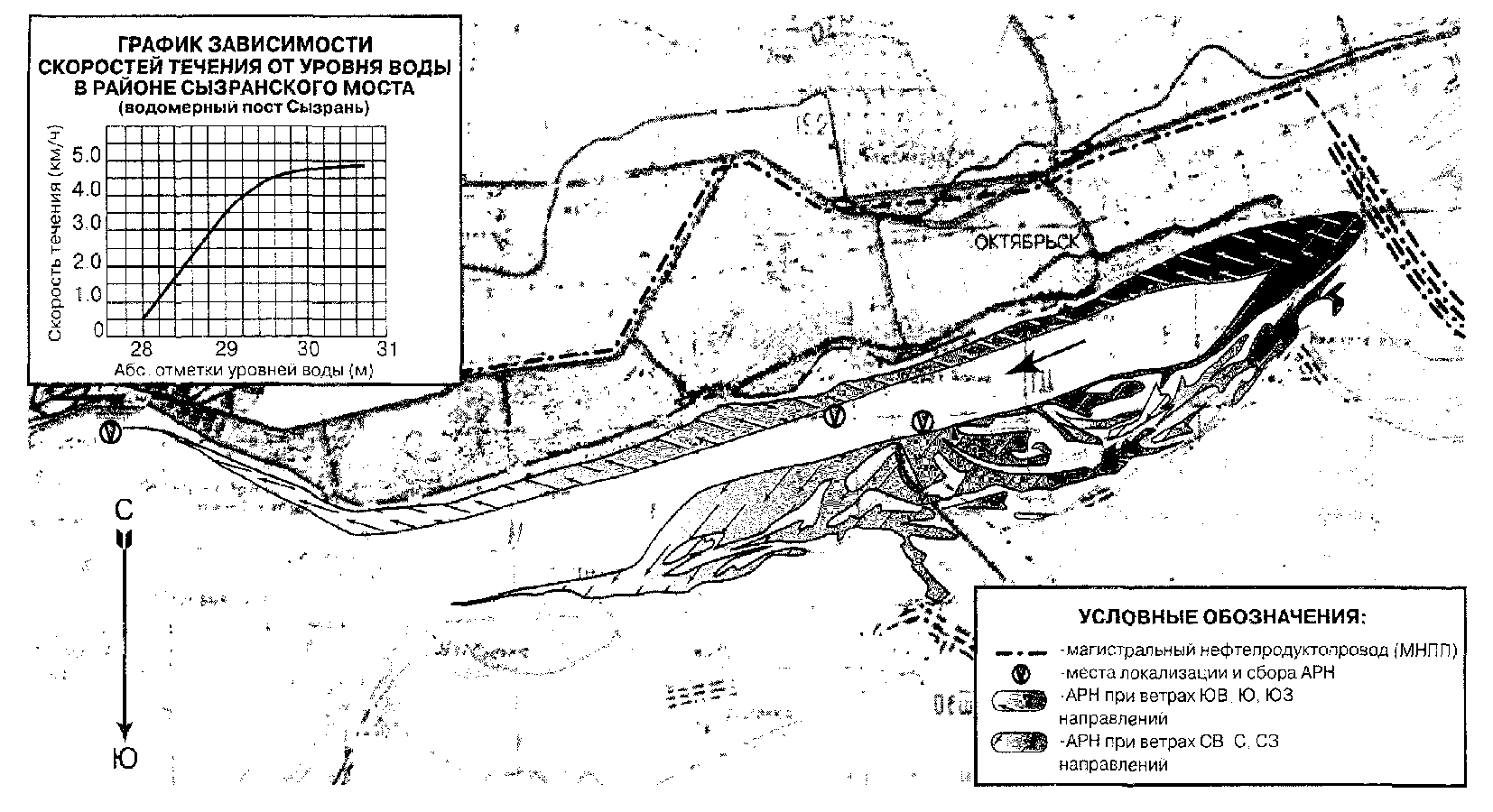 4.1.1. На ситуационном плане (М 1:150000, 1:200000) должен быть район в пределах 25 - 30 км ниже подводного перехода (ПП) с указанием на нем: