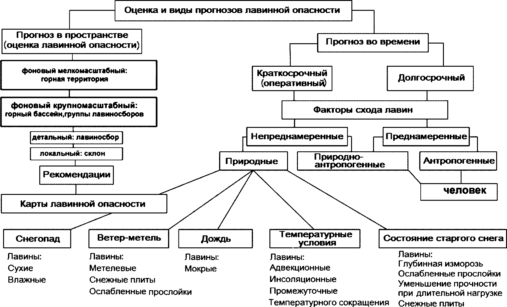 прогноз лавинной опасности: Заблаговременное определение вероятности спонтанного лавинообразования по территории горного бассейна или группы лавиносборов.