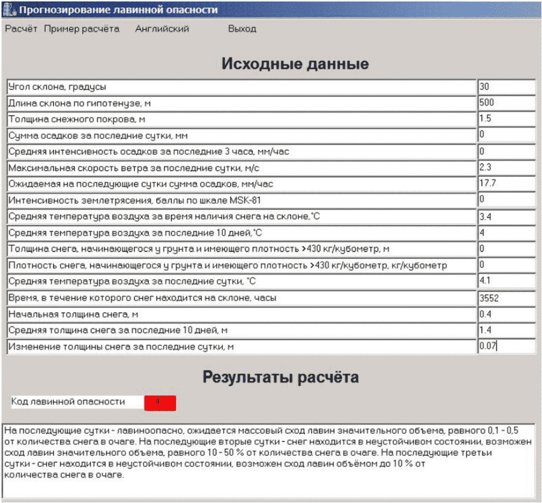 фоновый прогноз лавинной опасности: Оценка лавинной опасности в рассматриваемом горном районе [5]. |
